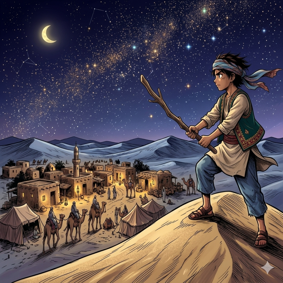 이 이야기는 파키스탄 발루치 사막을 배경으로 한 흥미진진한 어린이 모험 이야기입니다. 모래 언덕, 낙타, 별빛이 가득한 밤하늘, 그리고 따뜻한 마을 사람들 속에서 발람은 조금씩 진짜 전사로 성장해 갑니다.