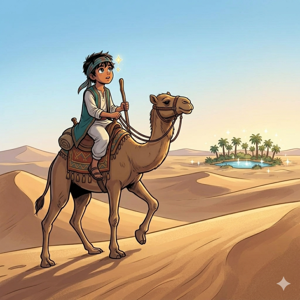 그날부터 발람의 진짜 배움이 시작됩니다. 사막에서 길을 찾는 방법, 별을 보고 방향을 아는 방법, 물을 아끼는 방법, 그리고 위험한 상황에서도 침착하게 생각하는 방법을 하나씩 배우게 됩니다.