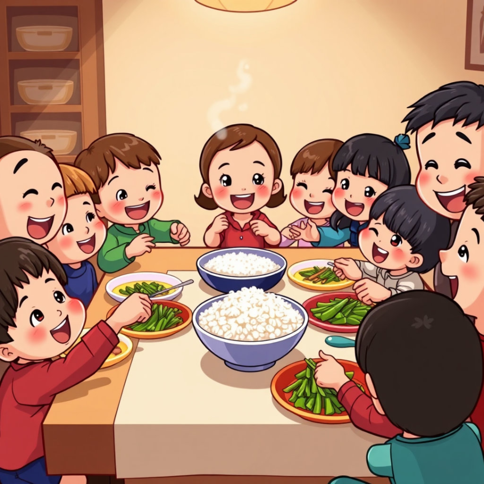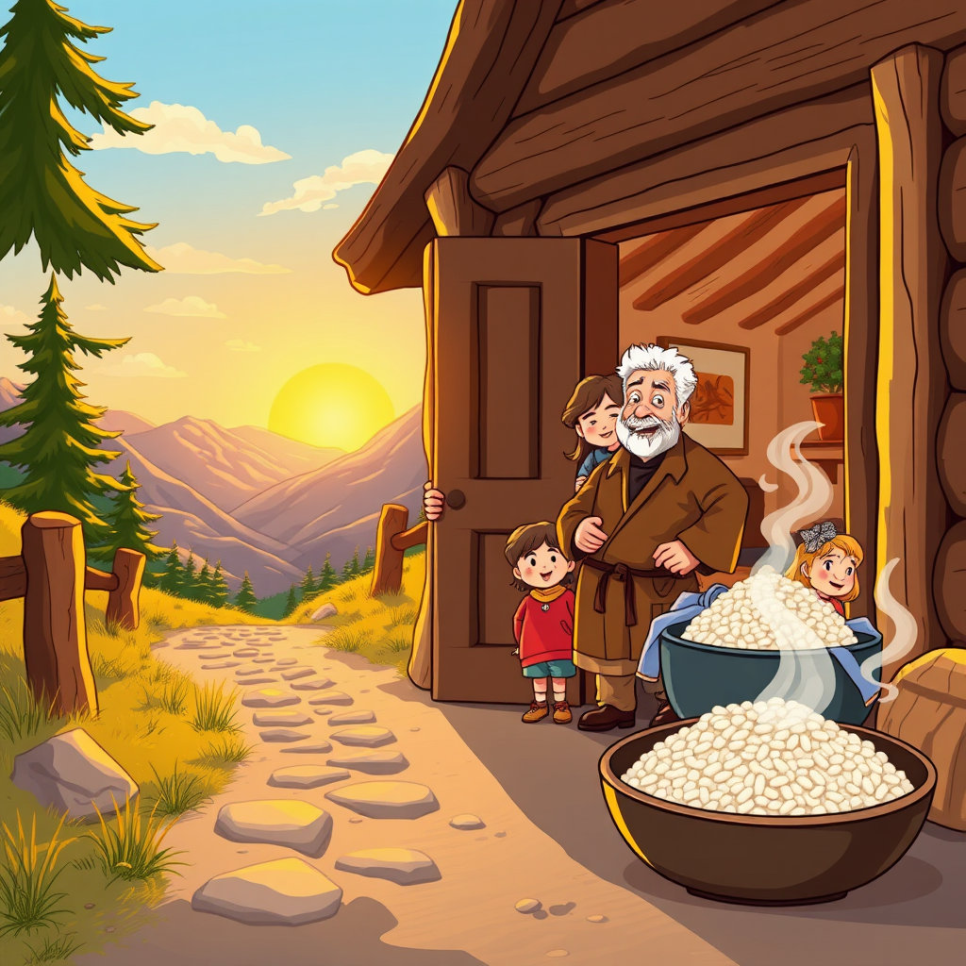 어느 날, 영감님은 마음을 달래기 위해 산길을 걸었습니다. 그리고 우연히 깊은 산속의 허름한 오두막에서 따뜻한 밥 냄새를 맡게 되었지요. 그곳엔 세 아이와 함께 살아가는 미소가 고운 아주머니가 있었습니다. 소박한 밥상, 다정한 말, 웃음 가득한 아이들… 영감님은 오랜만에 진심 어린 따뜻함을 느꼈습니다.