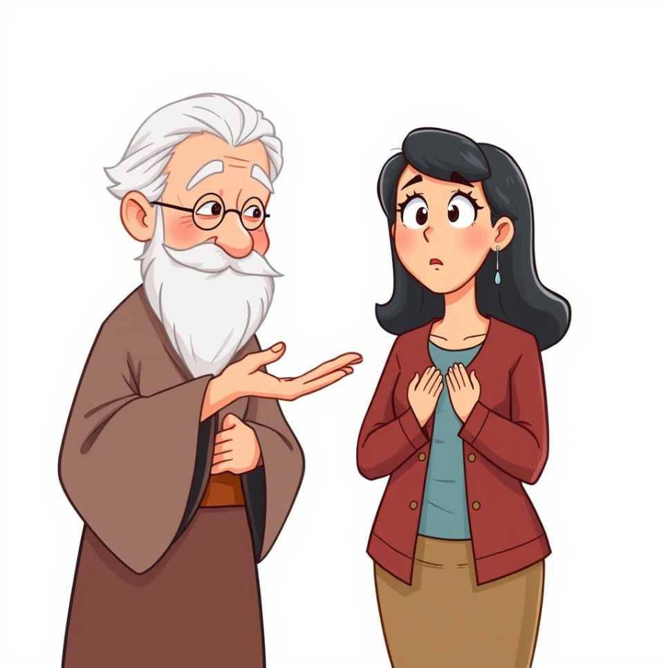 영감님이 소리치자, 낡은 옷을 입은 아주머니가 나왔어요.