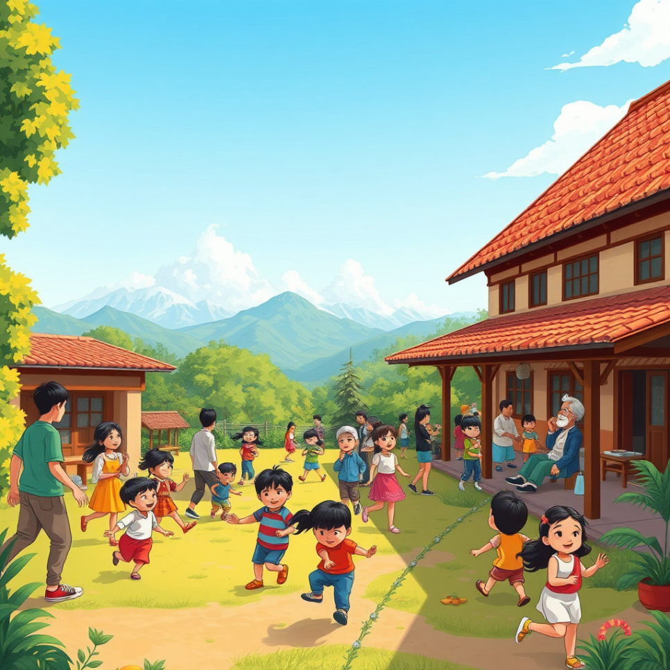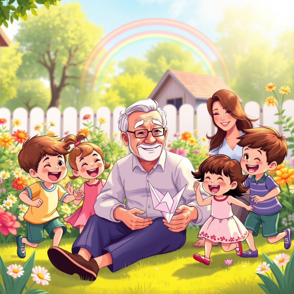 아주머니와 아이들은 영감님의 집으로 들어가 새 식구가 되었고, 그 집은 어느 때보다 따뜻한 웃음으로 가득해졌습니다. 아이들은 학교에 다니고, 아주머니는 마을 사람들과 잘 어울리며 새로운 삶을 시작했어요. 영감님은 매일 아이들의 웃음소리를 들으며, 마음이 점점 더 젊어졌지요.