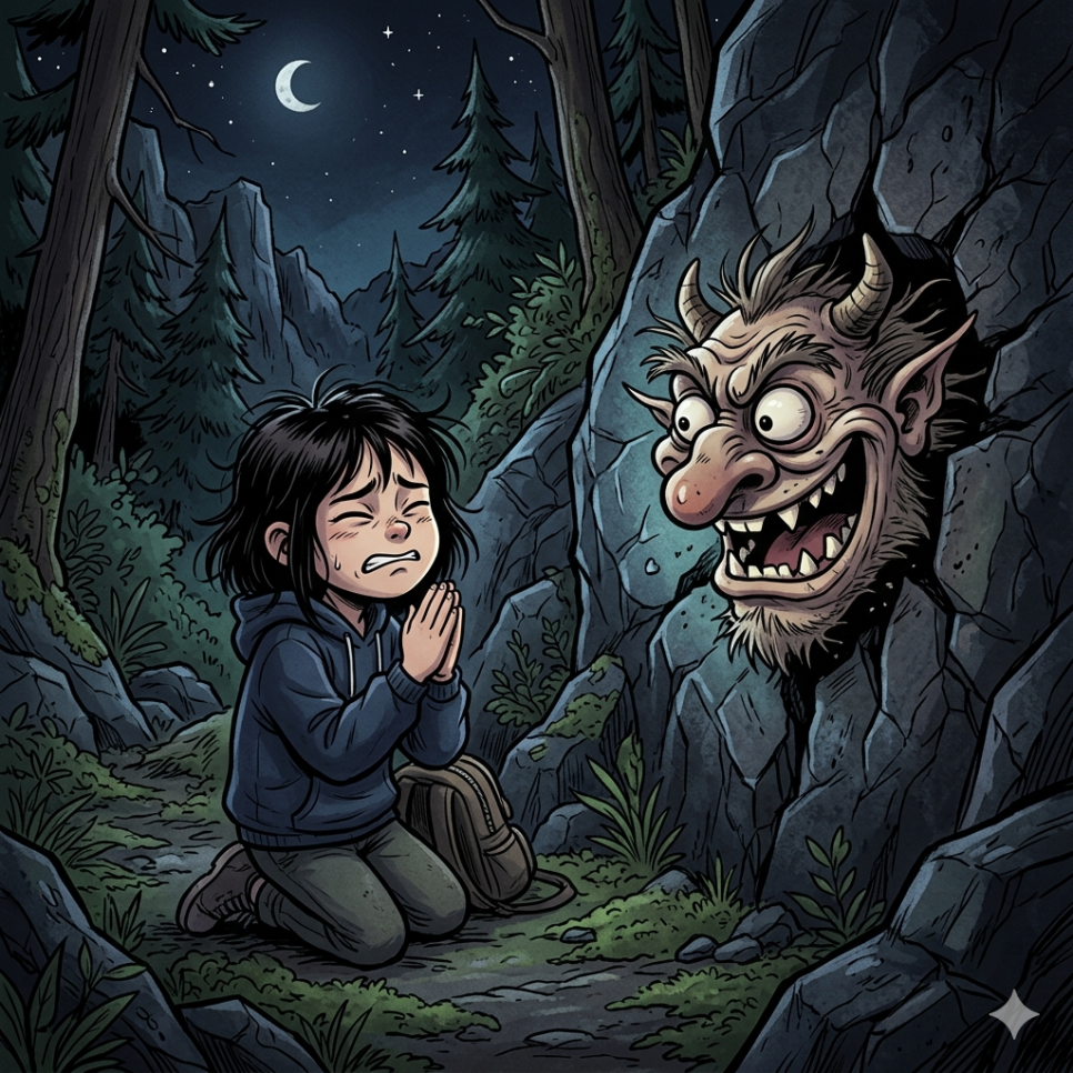 그 순간, 바위가 덜컹 흔들리더니 이상한 목소리가 들려왔어요.