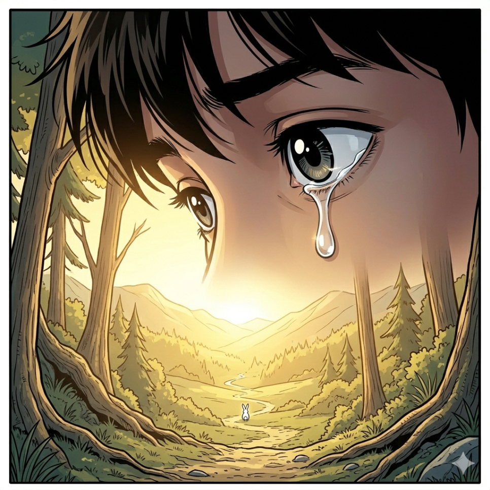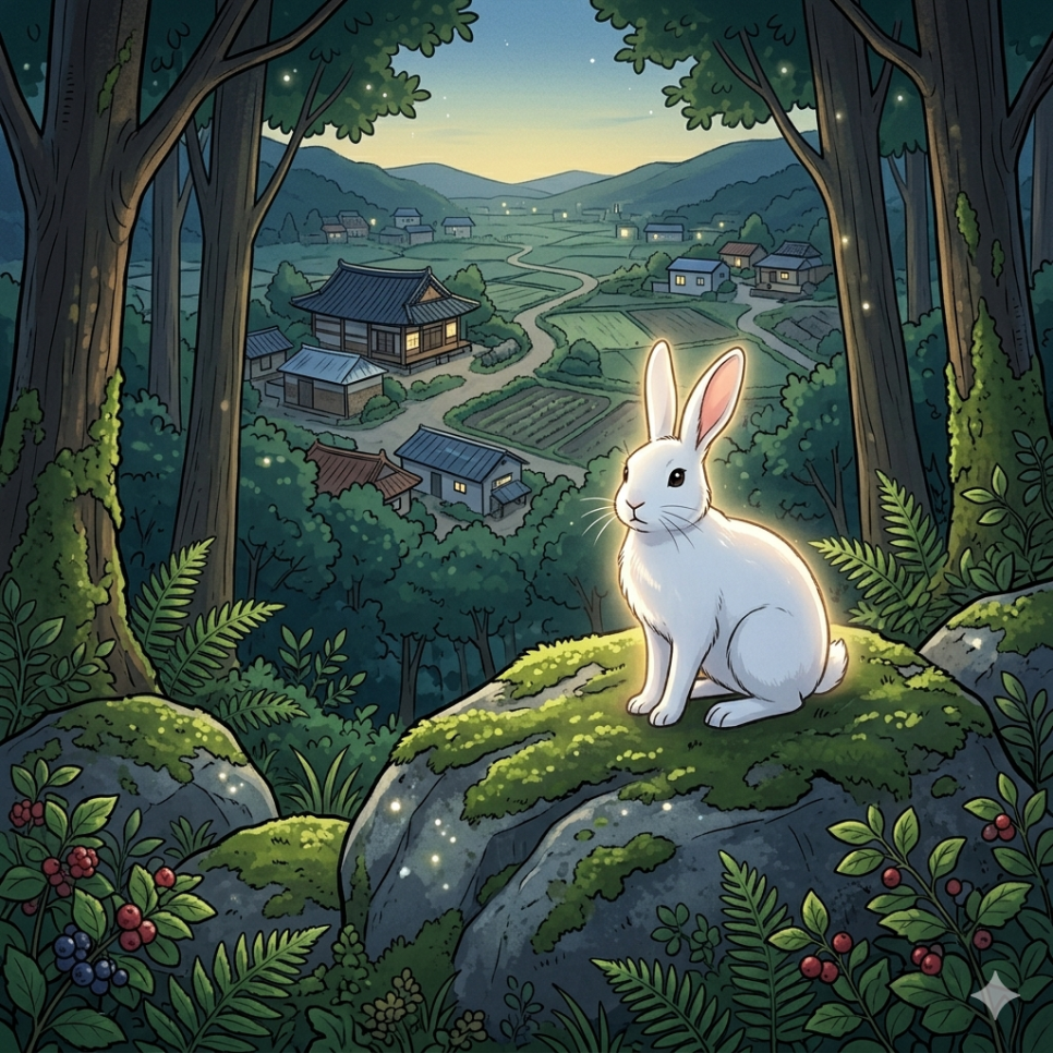 가만히 지켜보니 보리의 머리 위에는 작은 빛의 조각 같은 것이 감돌고 있었습니다. 마을 어른들이 말씀하시던 '산의 수호신' 이야기가 떠올랐습니다. 보리는 평범한 토끼가 아니었습니다. 주인공이 마을을 떠난 뒤에도, 이 산을 지키고 사람들의 추억을 보관하는 수호 토끼가 되어 있었던 것입니다. 보리가 주인공을 다시 부른 이유는 하나였습니다. 어른이 되어 고단함에 지친 옛 친구에게, 네 안의 순수함은 여전히 이곳에 잘 보존되어 있다는 것을 보여주고 싶었기 때문입니다. 보리의 맑은 눈을 통해 주인공은 잊고 지냈던 자신의 다정한 본모습을 다시 마주하게 되었습니다.
