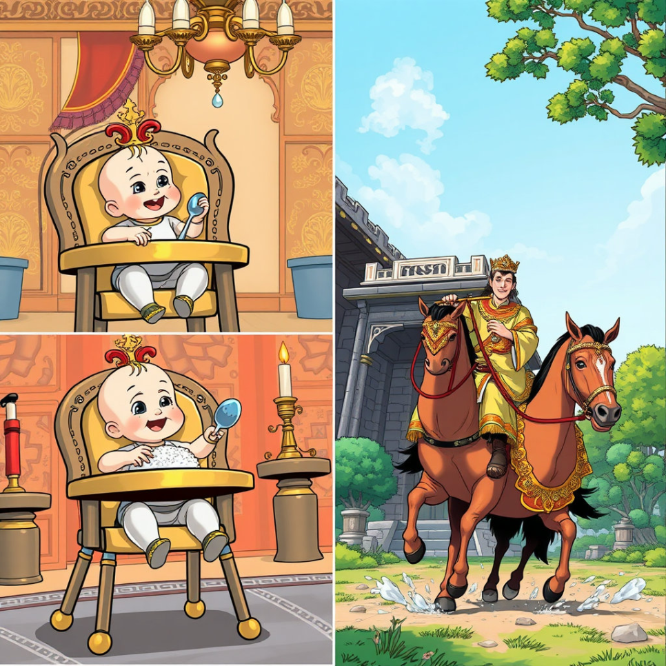 소년은 태어날 때부터 금비단 요에 누워 잠을 잤고, 은수저로 밥을 먹었답니다.
