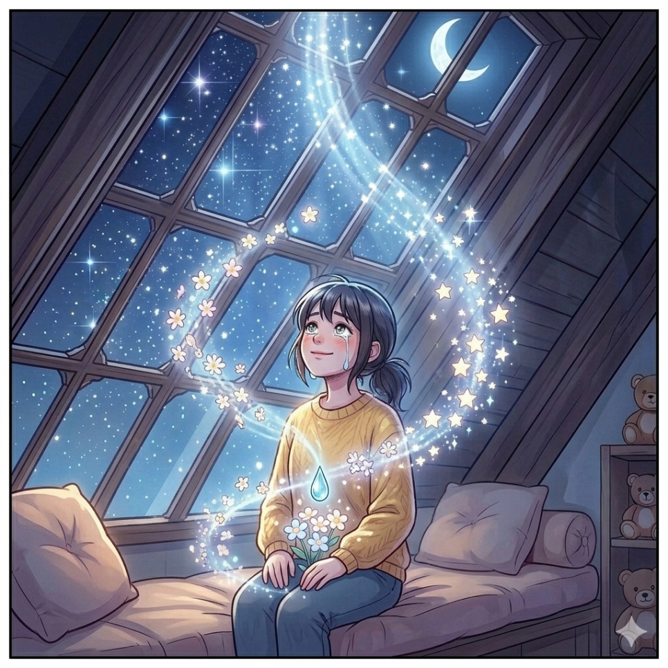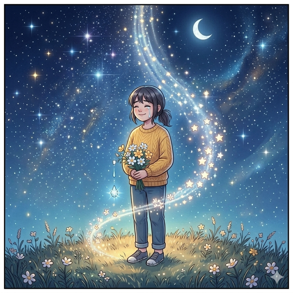 눈물은 사라지는 것이 아니라, 마음속 어딘가에서 반짝이는 별이 된다는 것을요.