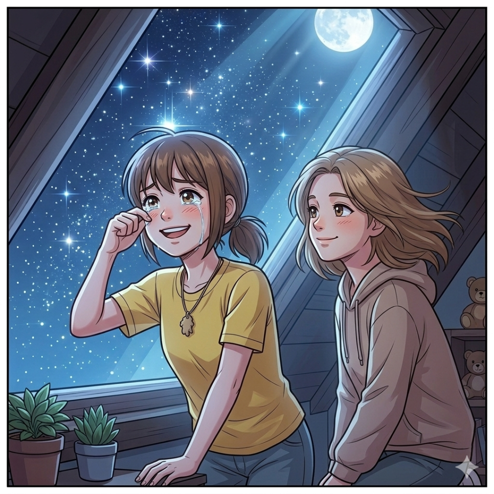 별이는 이제 예전처럼 자주 울지 않습니다. 하지만 눈물을 완전히 잊은 것은 아닙니다. 가끔은 여전히 슬프고, 외롭고, 마음이 아플 때가 있습니다. 그럴 때마다 별이는 하늘을 올려다봅니다.