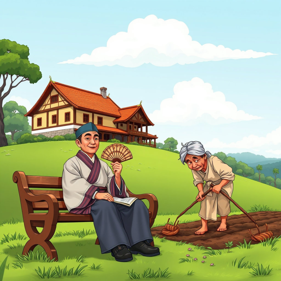 김 양반님은 편안한 사랑채에 앉아 책을 읽거나 손님들과 귀한 음식을 나누며 시간을 보냈지. 농사가 어떻게 되는지, 박 씨네 가족들이 얼마나 힘들게 일하는지는 크게 신경 쓰지 않았어. 당연하다는 듯이 곡식을 받아들이고, 더 많은 것을 요구하기도 했단다. 박 씨네 가족들도 힘들었지만, 신분이 다르다는 이유로 감히 불만을 이야기할 수도 없었어. 마치 보이지 않는 벽이 둘 사이에 높게 세워져 있어서, 노력의 결실을 함께 나눌 수도, 서로의 어려움을 진정으로 이해할 수도 없었던 거야. 박 씨네 땀방울은 오롯이 김 양반님의 풍족한 삶을 위한 밑거름이 되는 듯 보였단다.