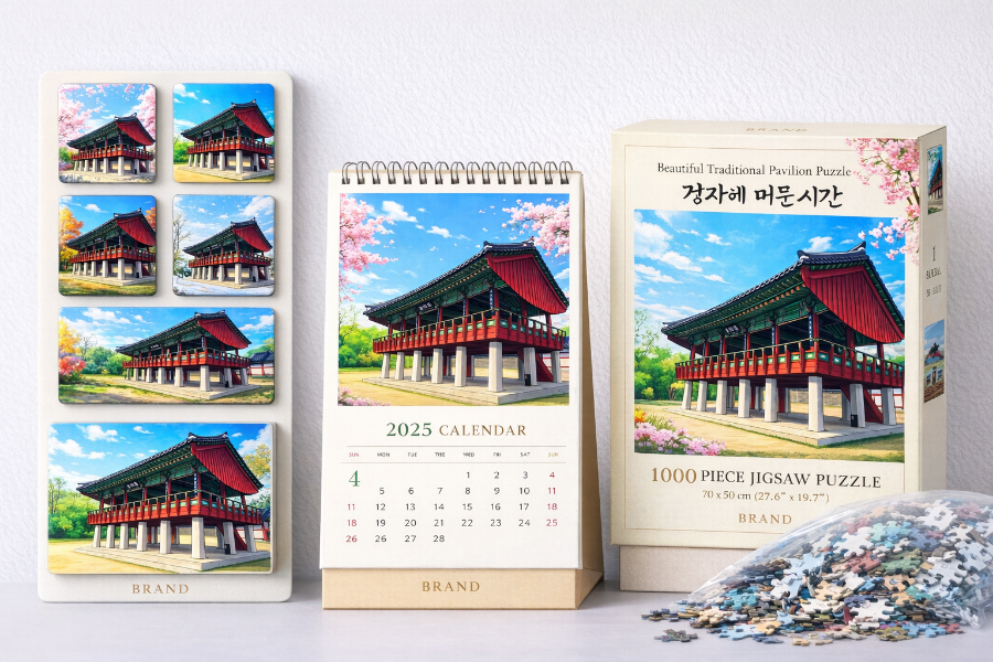 한글 제목 캘리 추가 (예: “정자에 머문 시간”)