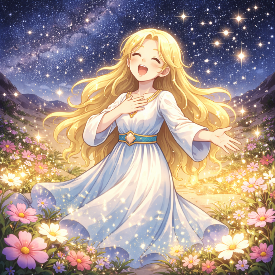 어느 날 밤, 누라는 별을 바라보며 노래를 부르기 시작했어요. 그 노래는 신비로운 힘을 가지고 있었지요.