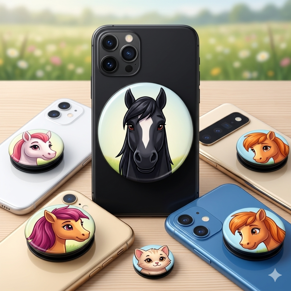 스마트톡 (그립톡): 검은 말이나 작은 말들의 얼굴을 클로즈업해서 스마트톡으로 만들면 휴대폰을 볼 때마다 기분이 좋아지는 귀여운 포인트가 됩니다.