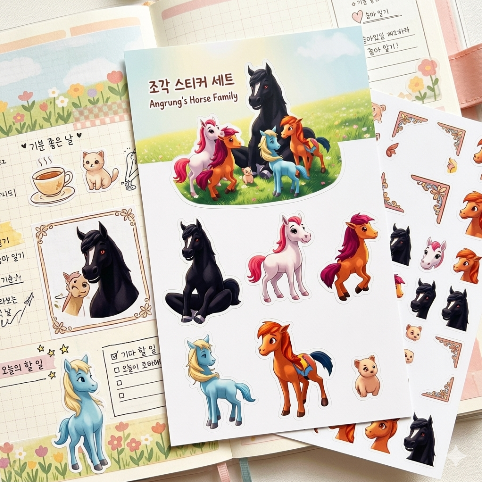 조각 스티커 세트: 각 캐릭터들을 개별 스티커로 제작해 보세요. 다이어리 꾸미기를 좋아하는 사람들에게 최고의 '앙증맞은' 선물이 될 거예요.