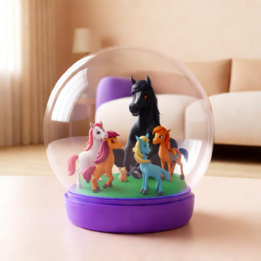 캐릭터들이 투명한 글리터 층 위에 떠 있는 듯한 느낌을 주어 더욱 생동감 있습니다.