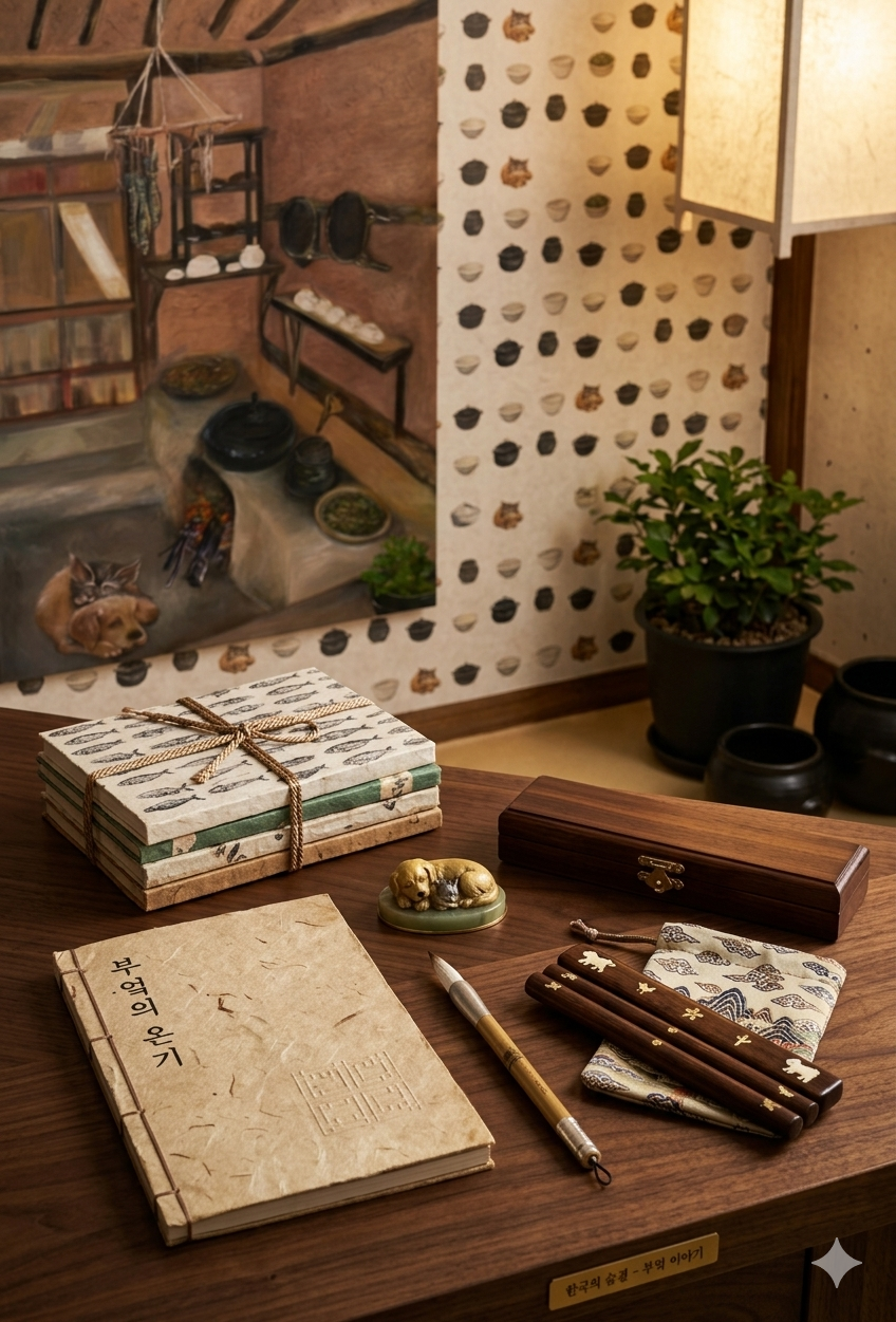 패키지 디자인 (Package Design): 제품을 담는 박스 또한 그림의 분위기를 반영해야 합니다. 예를 들어, 오동나무 상자에 보자기로 포장하거나, 그림 속 토벽 색상을 닮은 두꺼운 고급 종이 박스에 금박 로고를 새겨 첫인상부터 고급스러움을 전달해야 합니다.