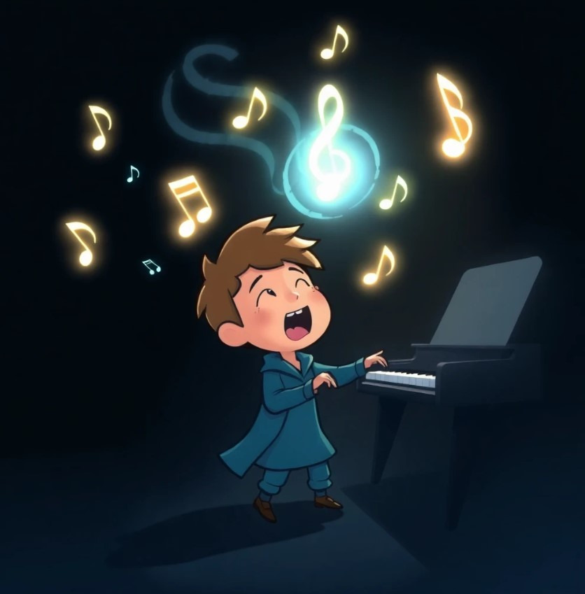 얼킨은 매일 피아노 앞에 앉아 새로운 음을 찾아보았습니다. 그리고 어느 날, 피아노에서 이상한 소리가 났습니다. 그 소리는 얼킨에게 말하는 것 같았습니다. "모든 음은 너에게 이야기하고 있어. 하나씩 들으며 네 이야기를 찾아봐." 얼킨은 그 말을 믿지 않았지만, 점점 더 많은 음을 찾아가며 마법을 느끼기 시작했습니다.