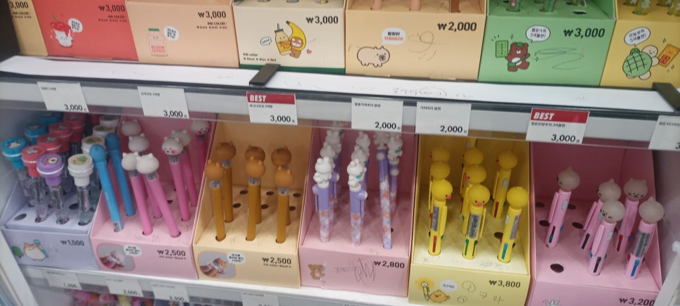 화사한 형광펜 세트: 다양한 네온 컬러의 형광펜 몸체에 캐릭터들이 뛰어노는 일러스트를 프린팅했습니다. 중요한 부분을 표시할 때마다 캐릭터 친구들이 응원해 주는 듯한 느낌을 줍니다.