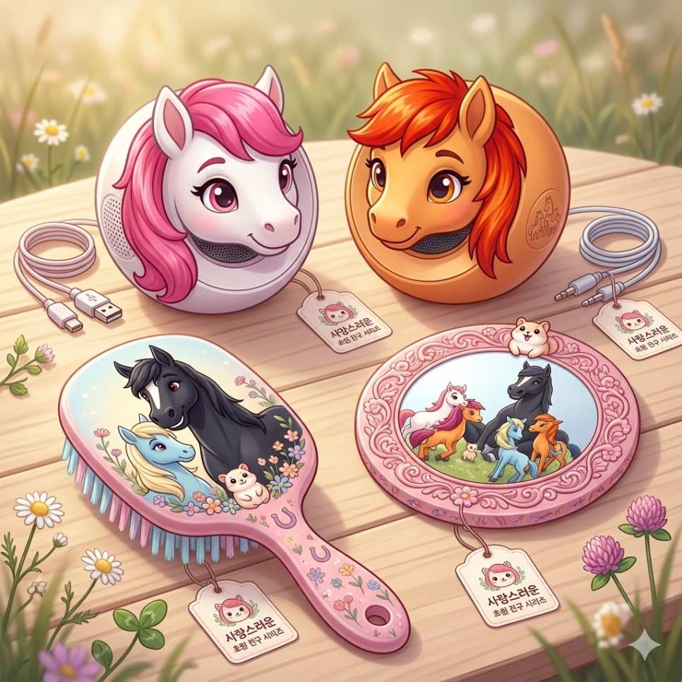 말 캐릭터들의 귀여운 매력을 담은 생활 가전 및 인테리어 소품 세트 이미지