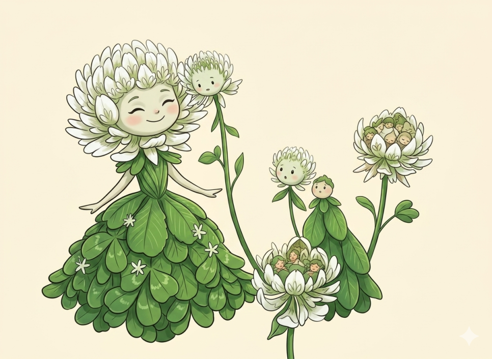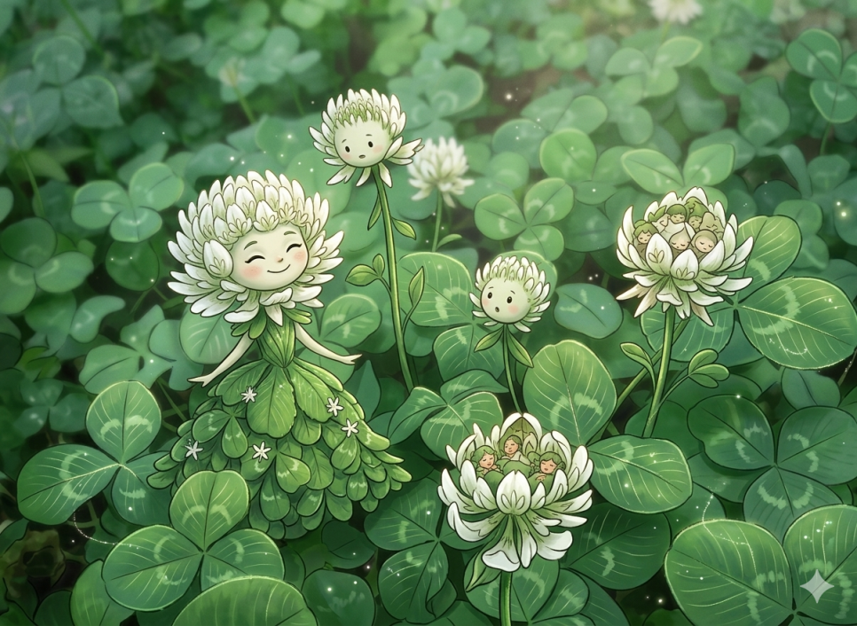 토끼풀꽃만 뽑아서 캐릭터 이미지 만들어줘