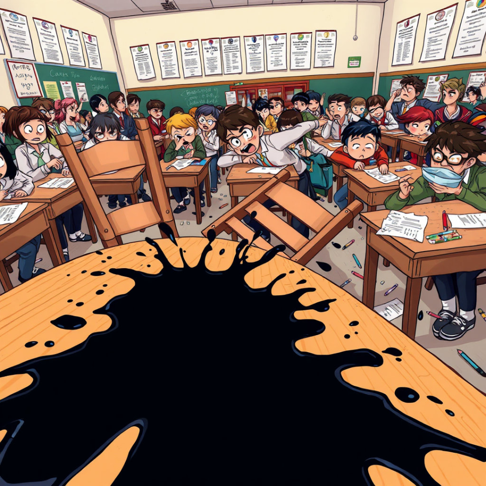 시험이 한창 진행되던 중, 도윤은 종이를 몰래 꺼내보려다 그만 감독관에게 발각되고 맙니다. 작은 쪽지가 펼쳐지는 순간, 주변의 시선이 쏠렸습니다. 그러나 사건은 여기서 끝나지 않았습니다. 뒤쪽 자리에서 누군가 중얼거린 말이 번져 웃음이 터지고, 시험지를 주우려던 유생이 책상을 건드려 먹물이 쏟아졌습니다. 엎질러진 먹물은 옆자리까지 번졌고, 책상과 의자가 부딪히며 시험장은 순식간에 소란스러운 장터처럼 변했습니다.