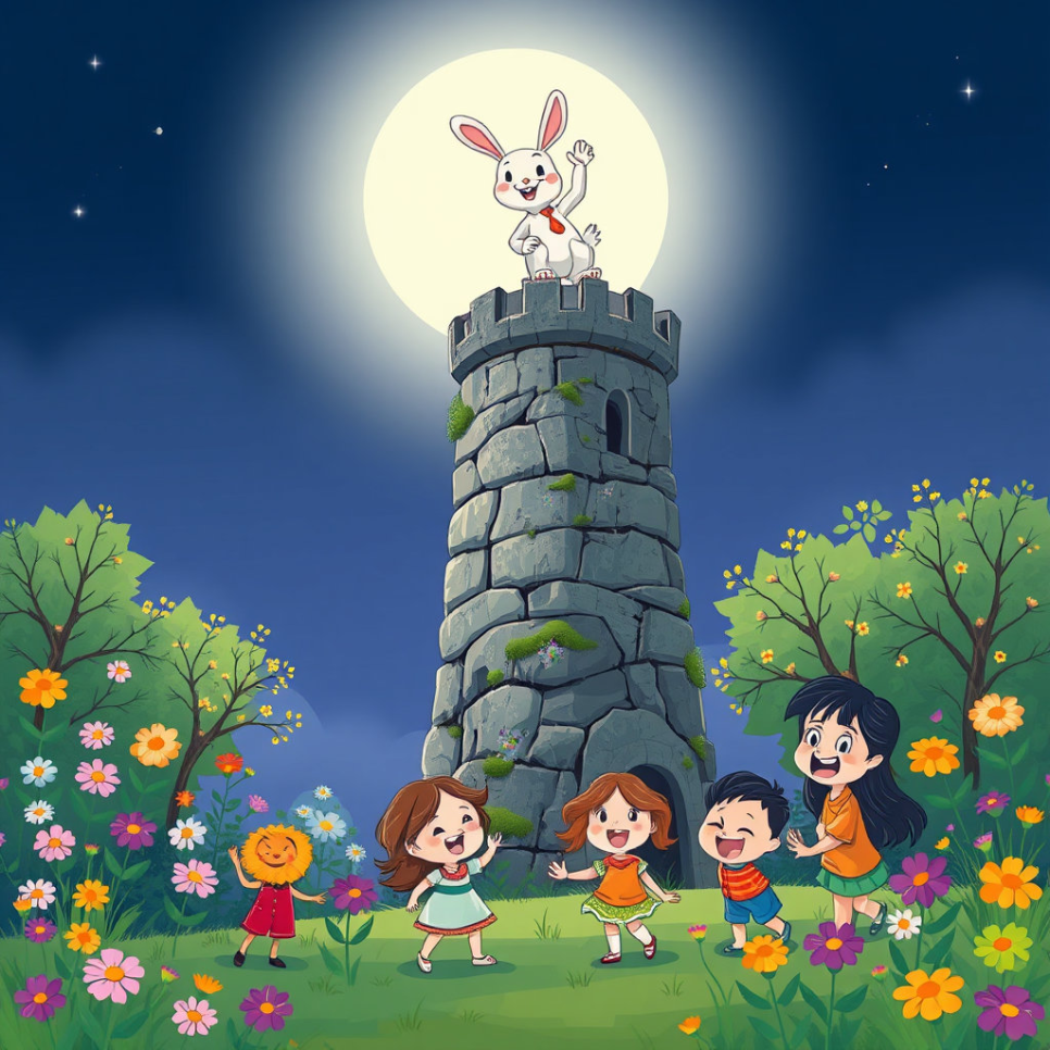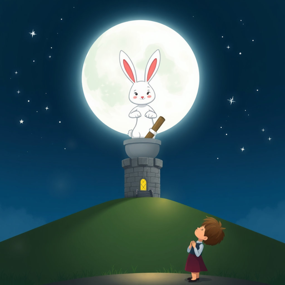 며칠 후, 돌탑 옆에서 이상한 소리가 들렸다. "쿵… 쿵…" 마치 멀리서 방아 찧는 소리 같았다. 하린이가 귀를 기울이자 은은한 웃음소리도 들렸다. "후후… 정성이 참 예쁘구나." 하린이는 깜짝 놀랐다. "혹시… 달토끼?" 하지만 아무리 둘러봐도 토끼는 보이지 않았다. 다만 달빛이 돌탑 위에 더 환하게 비치고 있었다.