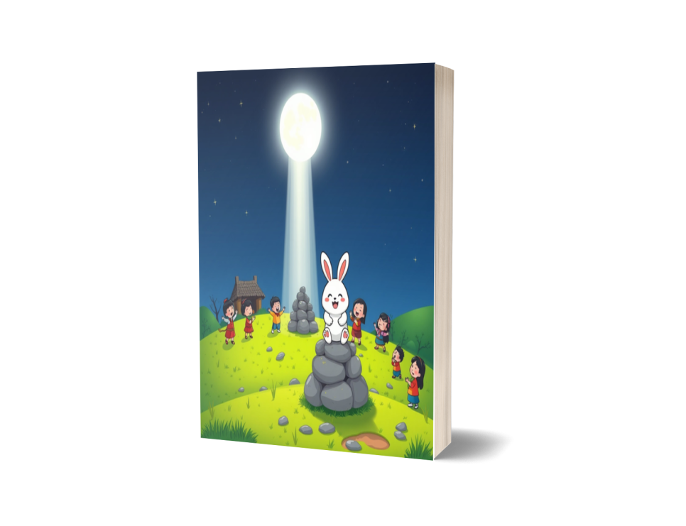 돌탑은 점점 커지고, 어느 날 밤, 달빛 속에서 달토끼의 웃음소리가 들려옵니다. 그리고 대보름 보름달이 다시 뜬 날, 달에서 내려온 하얀 토끼가 복떡을 돌탑 위에 올립니다. 봄이 되자 마을은 풍성한 수확과 웃음으로 가득 찼습니다.
