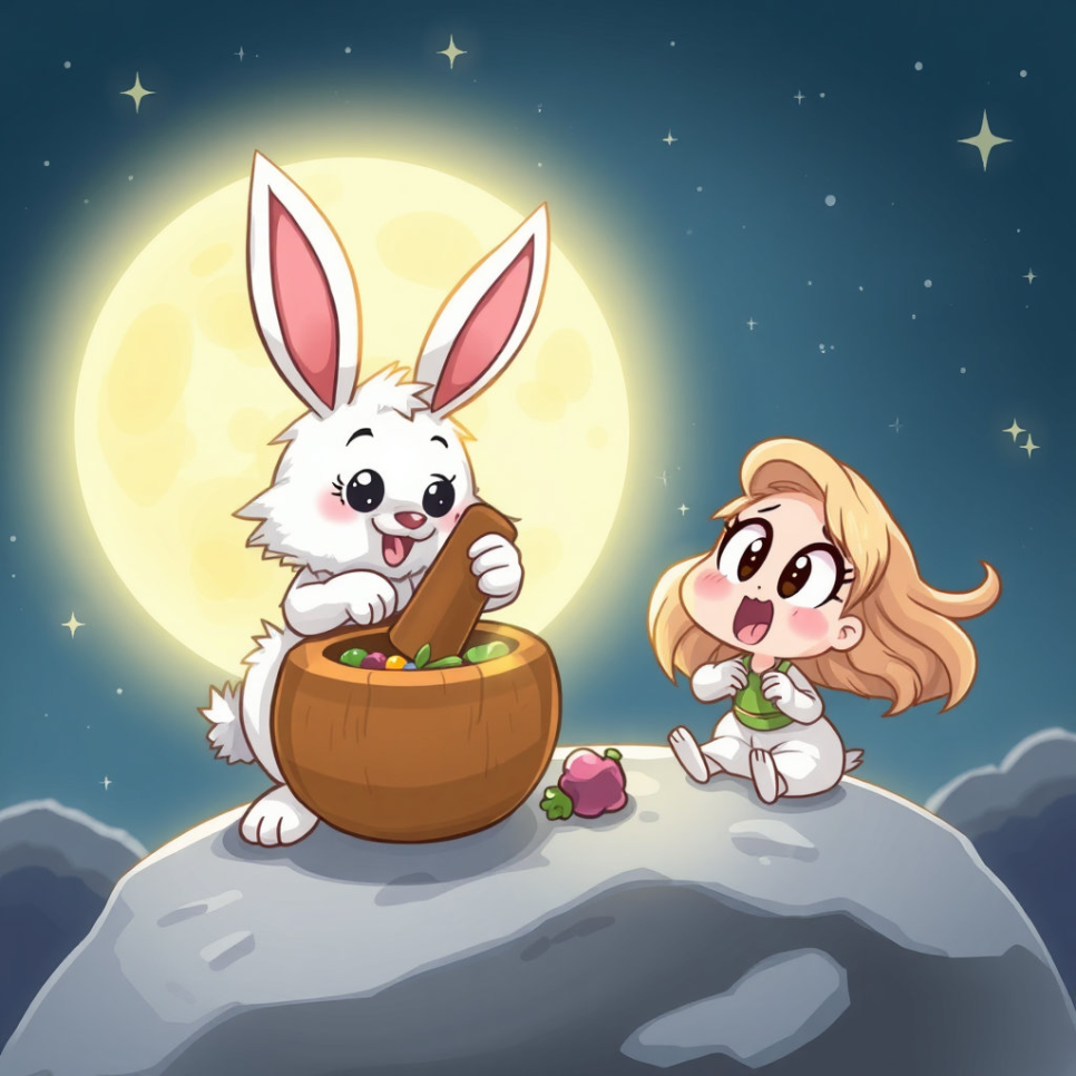 달은 변함없이 둥글게 떠 있었고, 그 속에서 하얀 토끼가 환하게 웃고 있었다.
