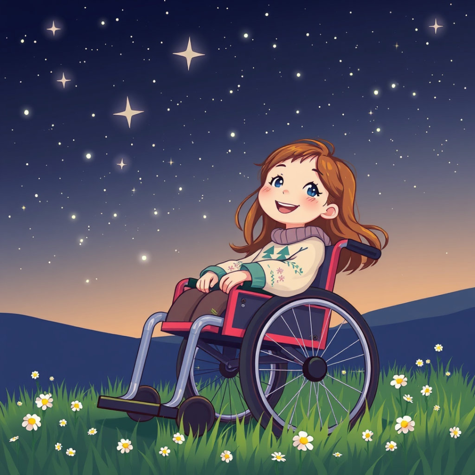 민지는 휠체어를 타지만 별빛을 보는 걸 좋아했어요.