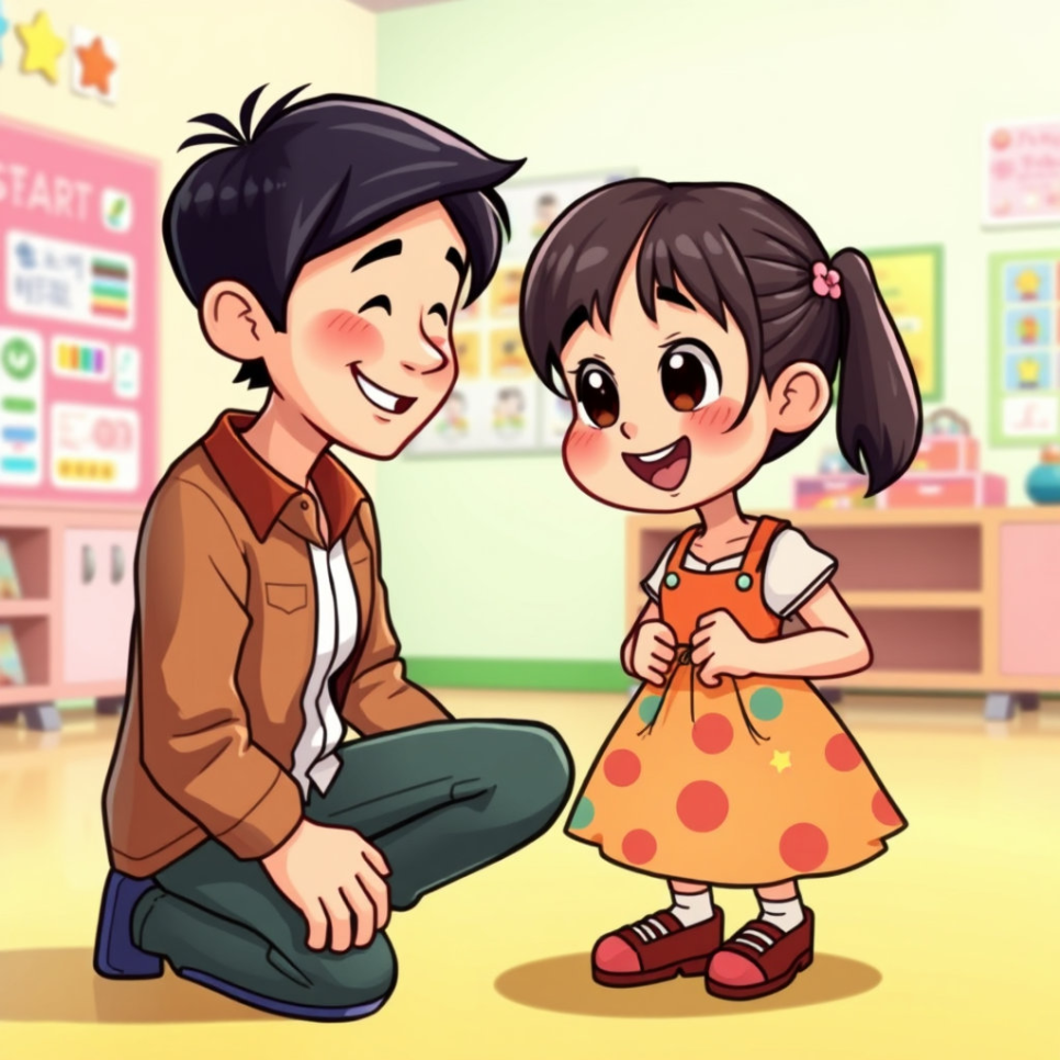 그러던 어느 날, 선생님이 다은이에게 “너는 누구보다 멋진 아이야”라고 말해 주었어요.