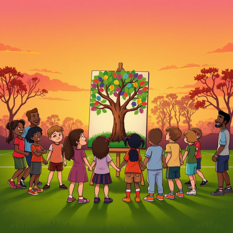 햇살이 부드럽게 마을을 감싸던 날, 아이들은 운동장에서 둥글게 모였습니다.