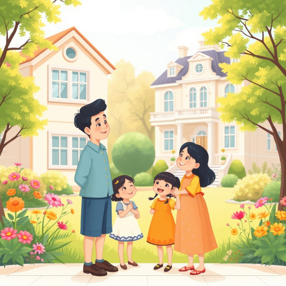 넓은 집과 좁은 집, 부잣집과 서민 집의 차이는 이제 더 이상 두려움이 아니었죠. 서로를 이해하고 존중하며, 어떤 어려움 속에서도 함께 웃을 수 있다는 자신감과 행복을 배웠어요.