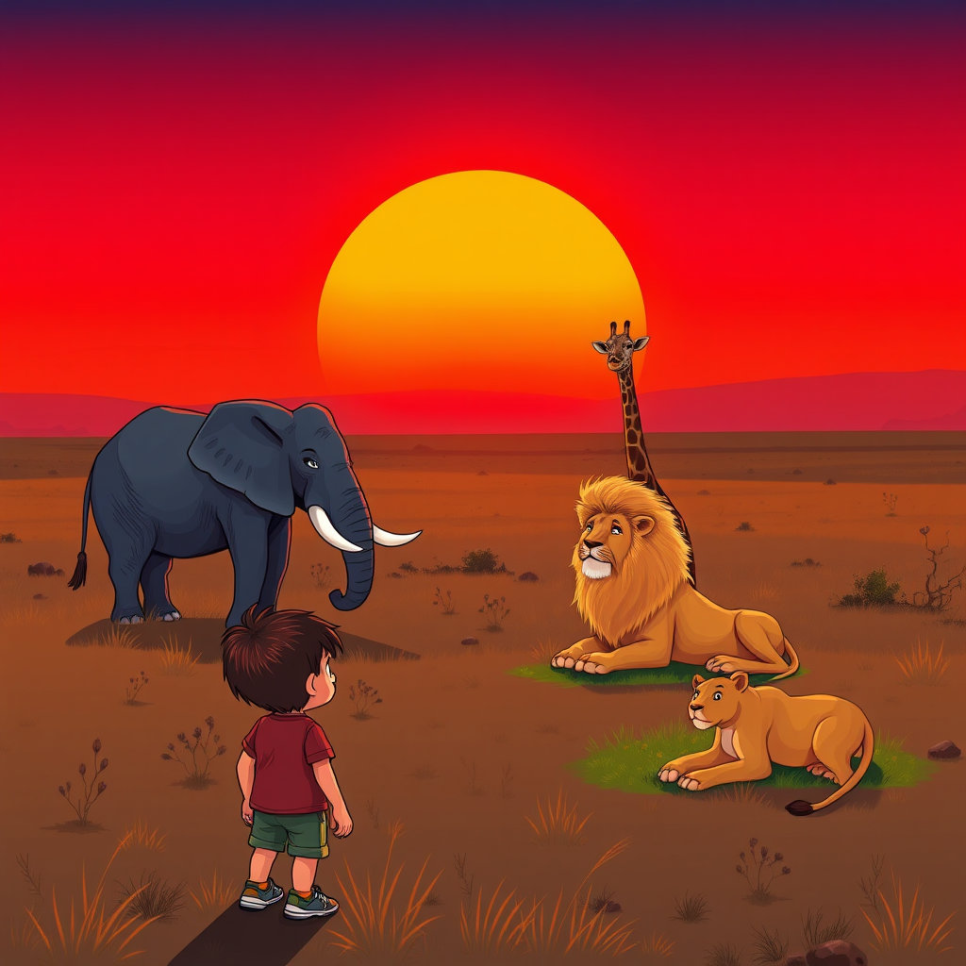 초원에 도착한 수아는 망원경으로 멀리 있는 코끼리 무리를 보았다. 기린이 나뭇잎을 따먹고, 사자가 졸고 있는 모습이 평화로웠다. 수아는 작은 발자국을 따라 걸으며 사파리를 탐험했다. 가이드 아저씨는 “동물들을 방해하지 않고 관찰해야 해”라고 알려주었다. 저녁이 되자, 초원에 해가 지며 주황빛 하늘 아래 동물들이 실루엣으로 보였다. 수아는 오늘 하루를 기록하며 “동물 친구들과 이렇게 가까이 있는 건 정말 신기한 경험이야!”라고 말했다.