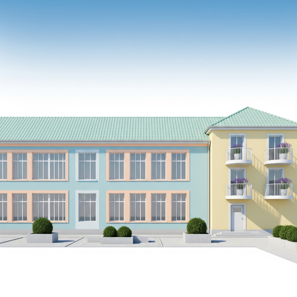 폐교의 기본 구조를 최대한 활용하고, 저렴한 자재를 사용하며, 인테리어 디자인을 단순화할 경우입니다. 건물의 기본 기능을 복구하고 최소한의 미적인 요소를 추가하는 정도입니다.