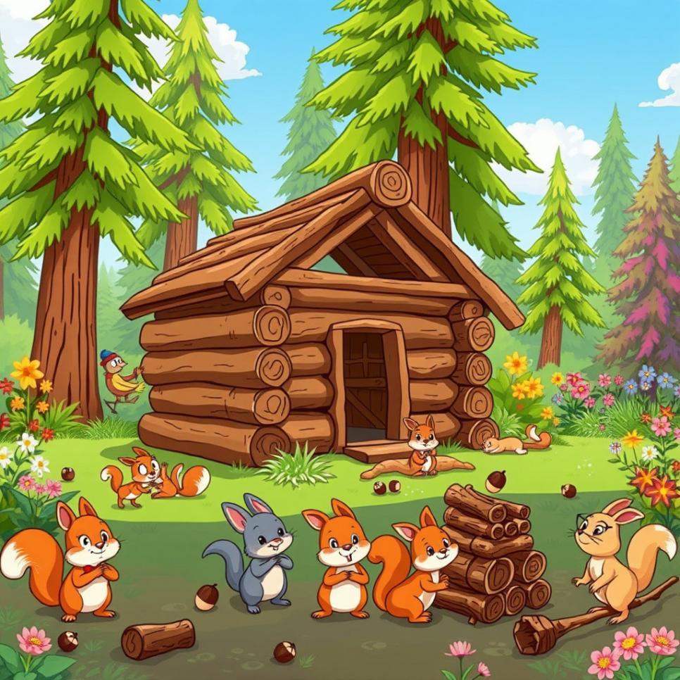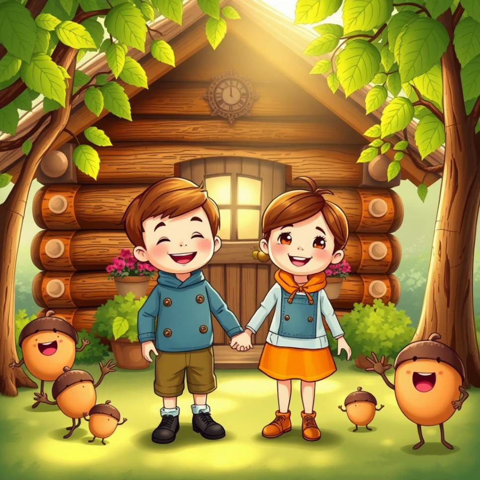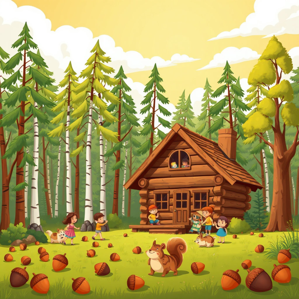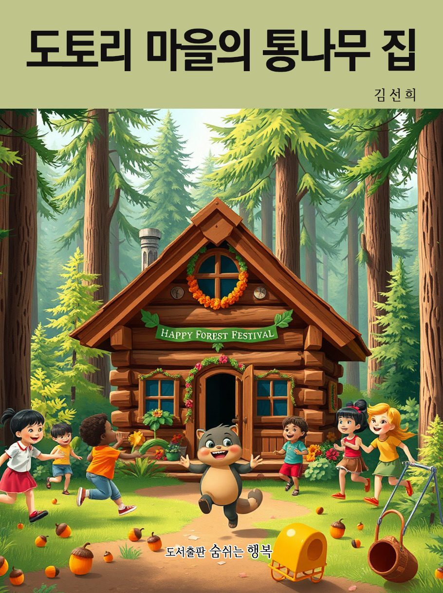 숲 속 친구들과 아이들이 함께 만든 통나무집은 이제 매일 웃음과 행복으로 가득 찼어요. 도토리들은 굴러다니며 작은 장난을 치고, 나무들은 바람에 흔들리며 웃음꽃을 피웠죠. 아이들은 통나무집 안팎에서 매일 새로운 모험을 즐기고, 삐죽이와 다람쥐 친구들과 함께 소중한 시간을 보냈어요.