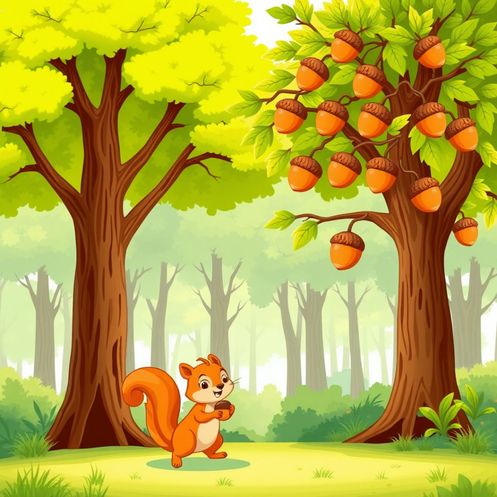숲 속 깊은 곳, 떨깔나무와 상수리나무가 함께 어울려 사는 신비로운 숲이 있어요. 봄이면 새싹들이 웃고, 여름이면 나무들이 서로 햇살과 바람 이야기를 나누죠. 가을이 되면 상수리나무의 열매는 스스로 도토리로 변하며, 숲 속 친구들과 모험을 떠날 준비를 합니다. 도토리들은 서로 굴러 다니며 장난을 치고, 때로는 톱질 소리에 깜짝 놀라기도 하지만, 작은 다람쥐와 새 친구 삐죽이 덕분에 늘 웃음 가득한 하루를 보냅니다.