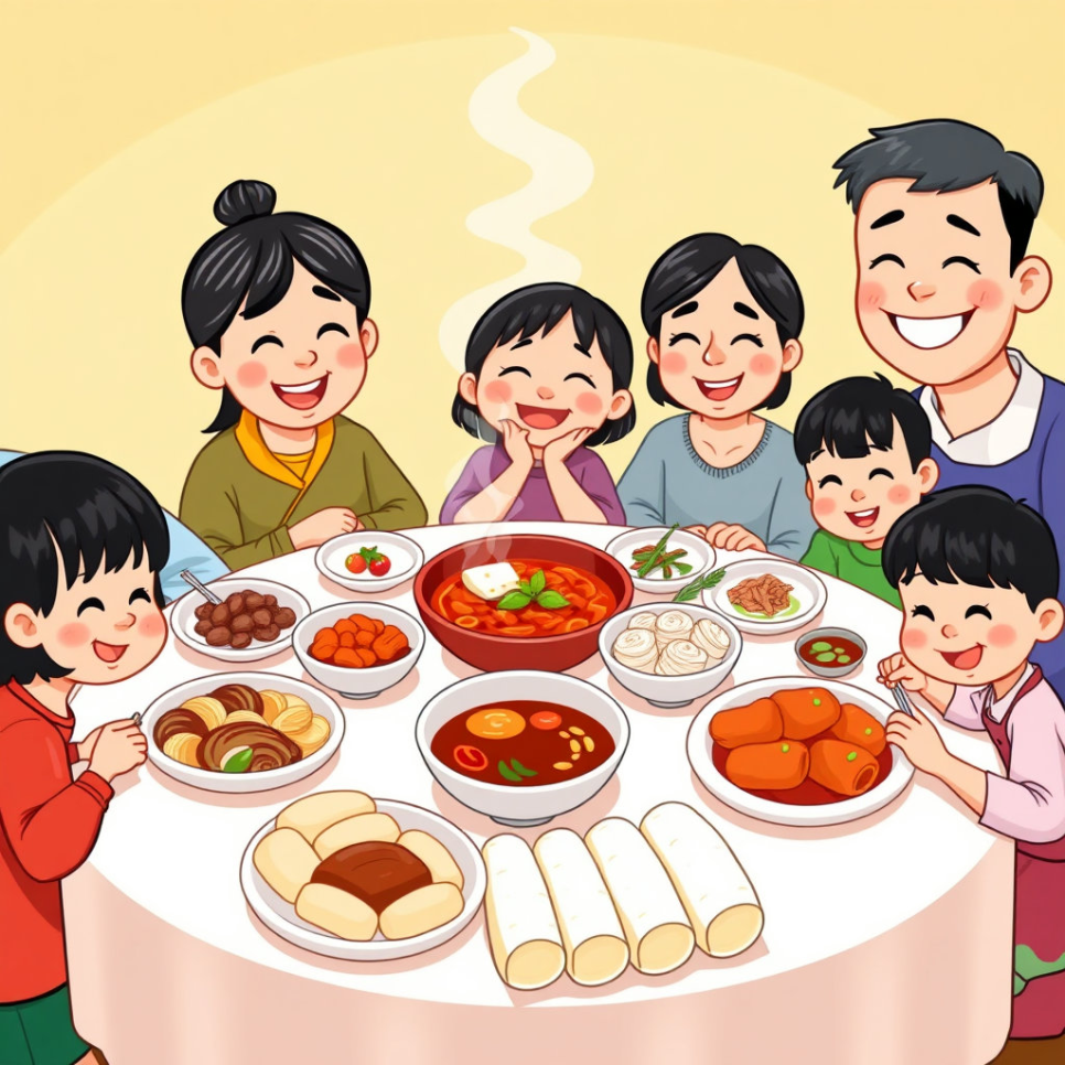 아무리 맛있는 음식도 혼자 먹으면 재미가 없었어요. 하지만 가족이 모여 둘러앉아 먹을 때, 그 맛은 더욱 특별해졌지요.
