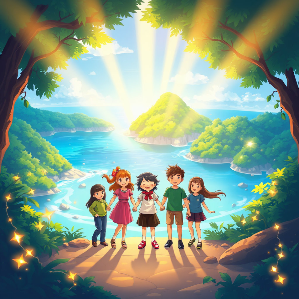 그리고 아이들은 다시 뛰어놀았다. 평화로운 섬에서, 서로와 자연을 지키며 함께 살아가는 법을 배운 채.