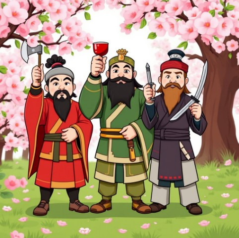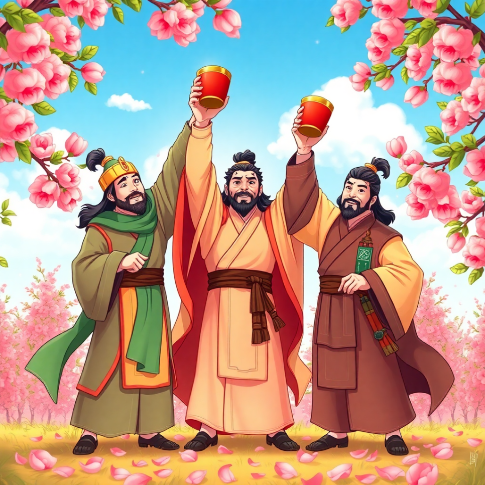 – 유비, 관우, 장비가 형제가 되는 이야기. 우정과 의리의 시작.