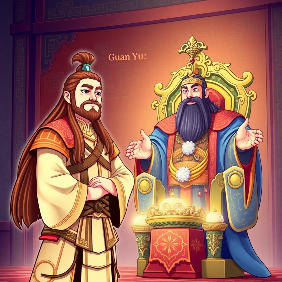 어느 날, 관우는 포위된 성을 끝까지 지켰지만, 결국 적에게 잡히고 말았어요. 그러나 그는 끝까지 동료와 형제의 이름을 더럽히지 않았어요. 누구보다 의로웠고, 마지막까지 약속을 지킨 인물이었죠. 사람들은 그의 죽음을 슬퍼하며, 오래도록 그를 기억했어요. 관우의 이야기는 용기와 약속, 그리고 의리의 이름으로 남았답니다.