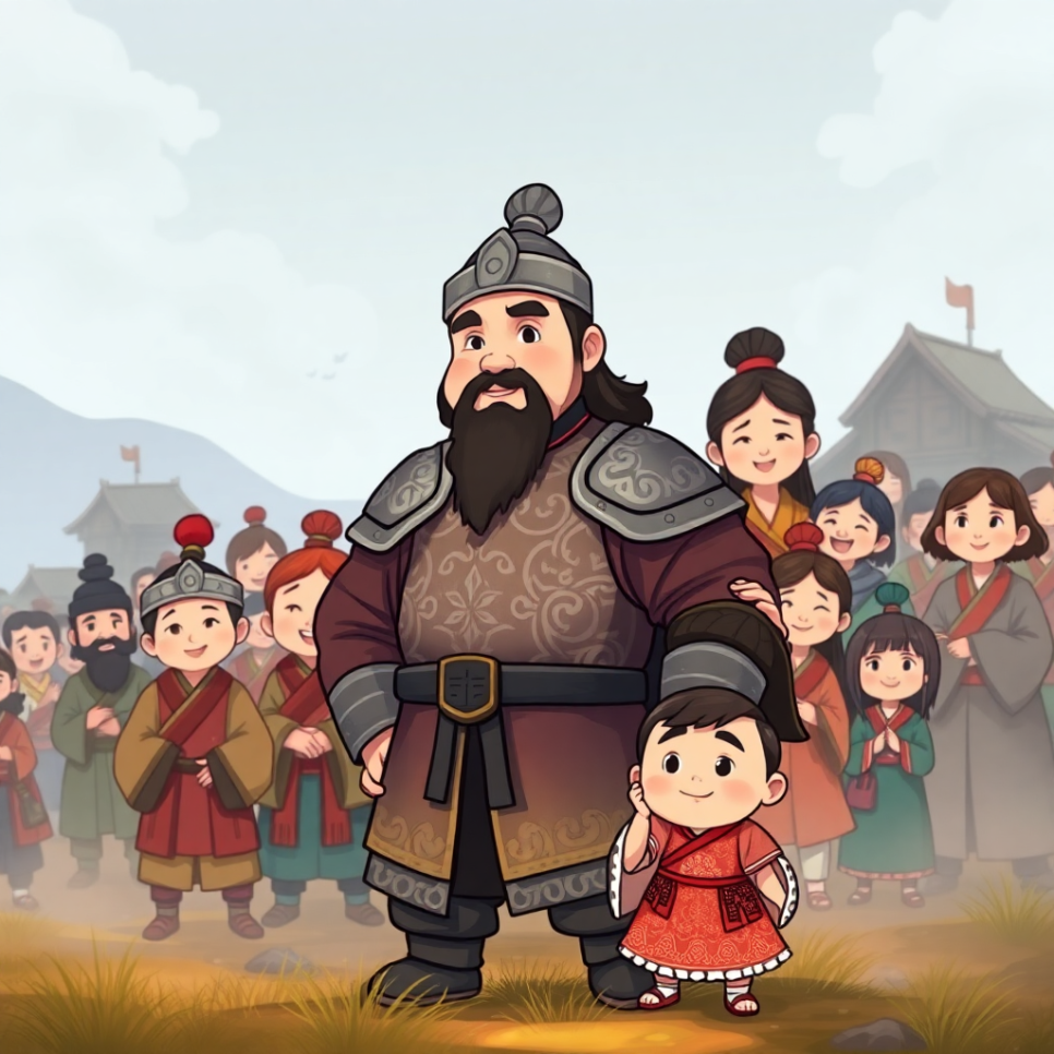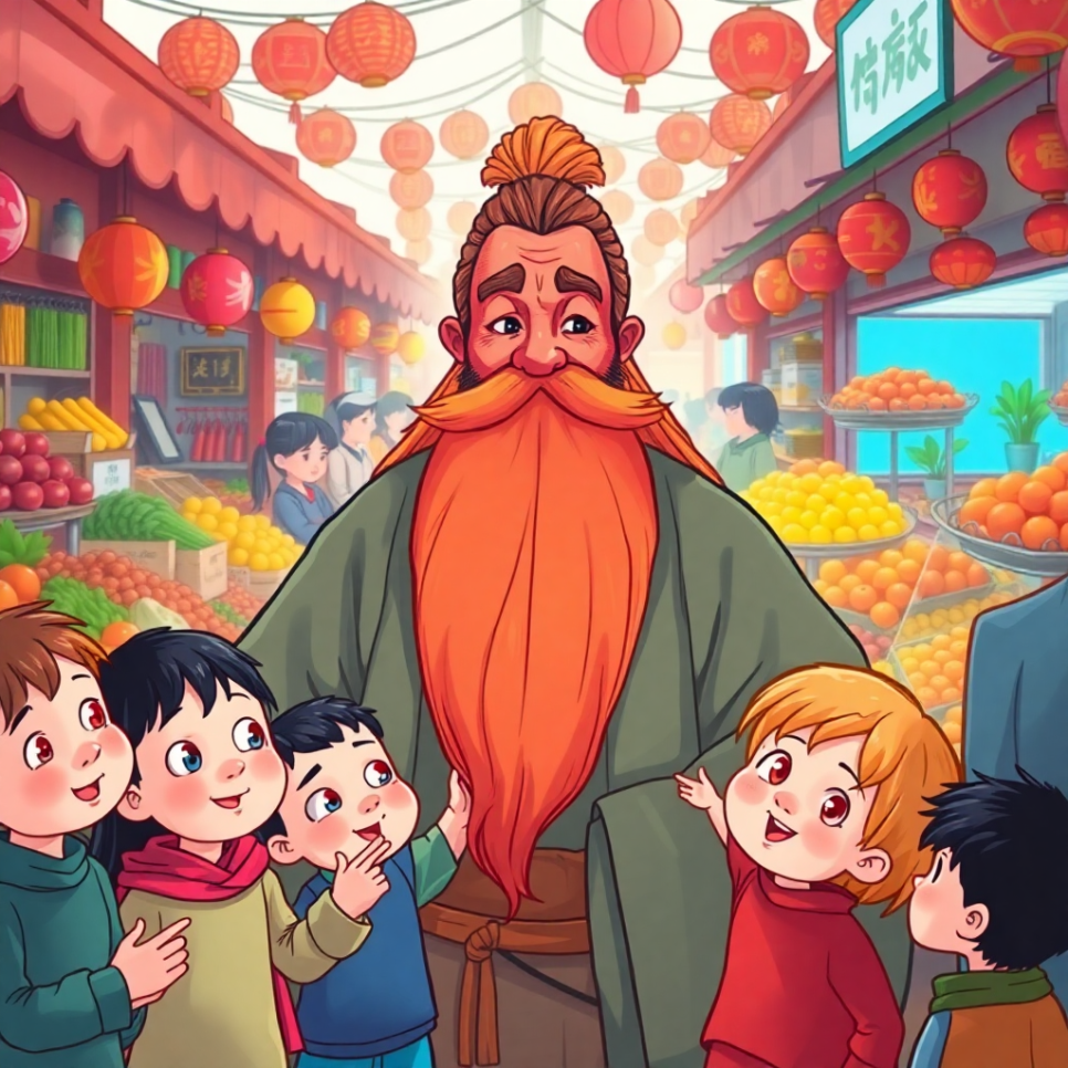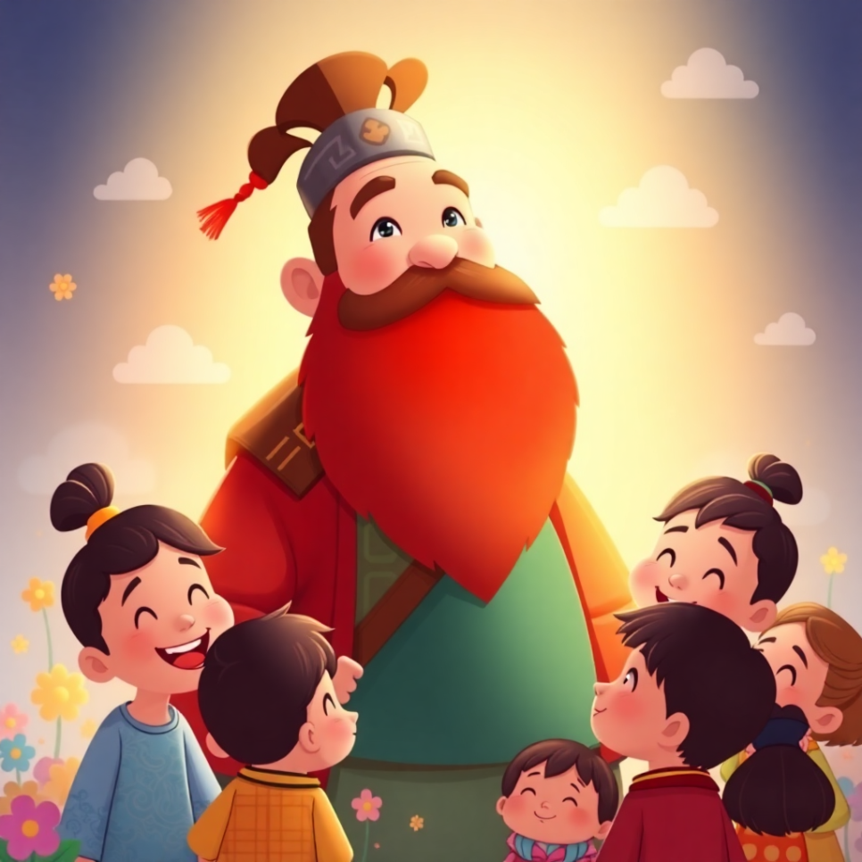 시장에서 아이들이 웅성거렸어요. "우와, 저 아저씨 얼굴이 빨개! 수염이 얼마나 긴지 땅에 닿겠어!" 아이들의 시선 끝엔 위풍당당한 아저씨가 서 있었어요. 그는 관우라는 이름을 가진 장군이었죠. 얼굴은 붉고 수염은 길었지만, 눈빛은 따뜻했어요. 사람들은 그를 무서워하면서도 존경했답니다. 그는 항상 정의롭고, 약한 사람을 도우며 살았어요. 아이들은 몰래 그를 따라다니며 말했죠. "나도 커서 관우처럼 되고 싶어!"
