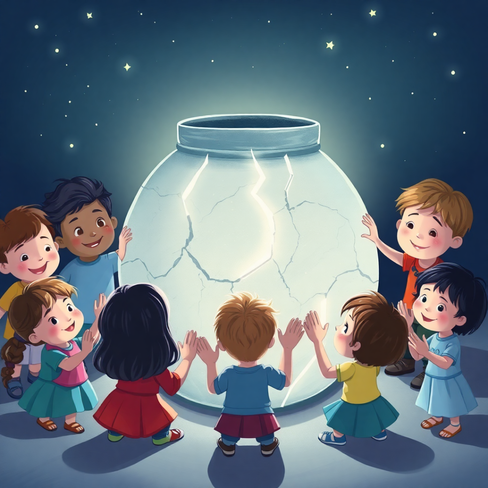 옛날 옛적, 별이 총총 빛나는 밤이었어요. 산골 마을에 사는 아이들은 둥근 달을 보며 소원을 빌곤 했지요. “달님, 달님, 우리 마을에 늘 웃음이 가득하게 해주세요.” 그런데 그날 밤, 아이들은 신기한 광경을 보았어요. 하늘의 둥근 달빛이 살며시 내려와 마을 어귀에 ‘커다란 흰 항아리’가 놓인 거예요. 아이들은 눈을 반짝이며 속삭였지요. “달님이 우리에게 선물을 주신 걸까?” 그 항아리는 신비롭게 빛났고, 사람들의 마음을 따뜻하게 감싸 주었답니다.