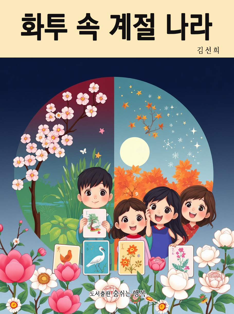 《화투 속 계절 나라》은 전통 화투 그림 속 자연을 어린이 눈높이에 맞춘 동화로 풀어낸 책입니다. 어른들에게 익숙한 화투는 단순한 놀이판의 카드가 아니라, 사실은 우리나라 사계절과 자연, 그리고 삶의 가르침을 담은 작은 그림책이기도 합니다.