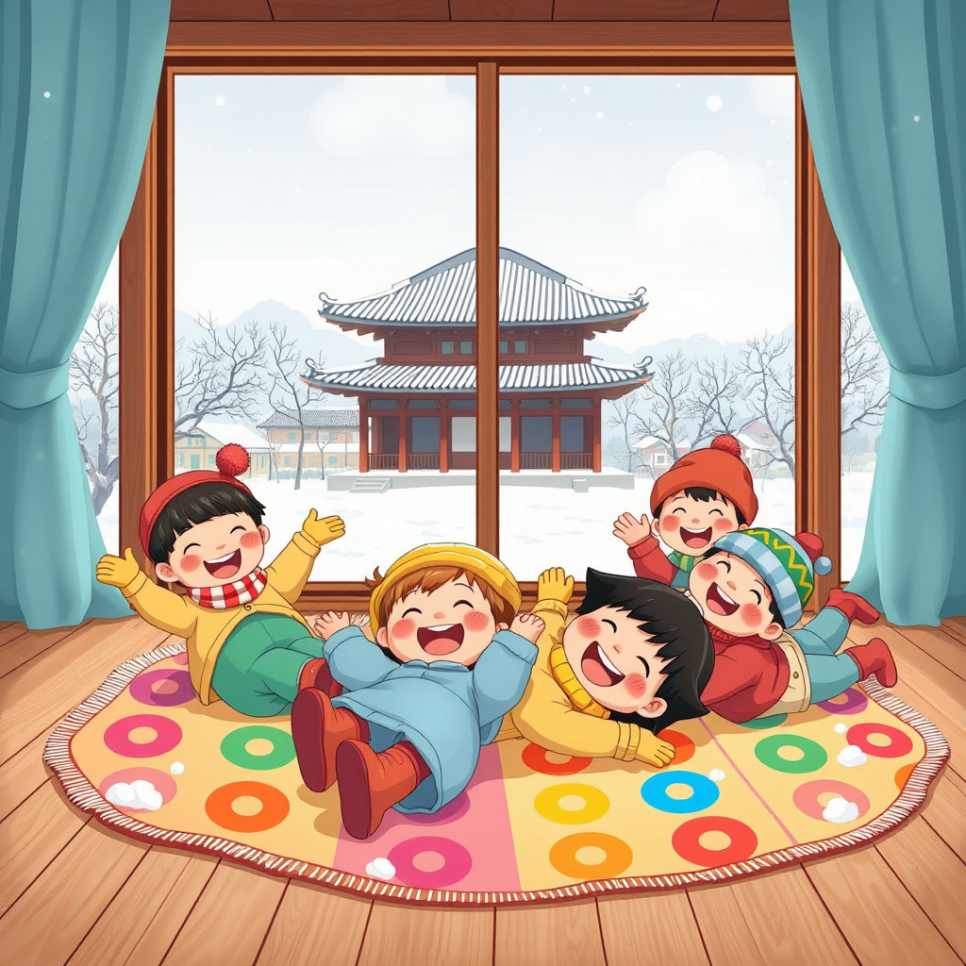 마당에서는 윷놀이, 제기차기, 딱지치기가 이어졌어요. 단순히 노는 게 아니라, 함께 어울리고 협력하며 지혜를 배우는 놀이였지요. 외국에서 즐기는 보드게임이나 공놀이와 달리, 한국 전통놀이는 자연과 사람의 관계를 담고 있었어요. 친구들은 놀이로 배우는 지혜에 감탄했답니다.