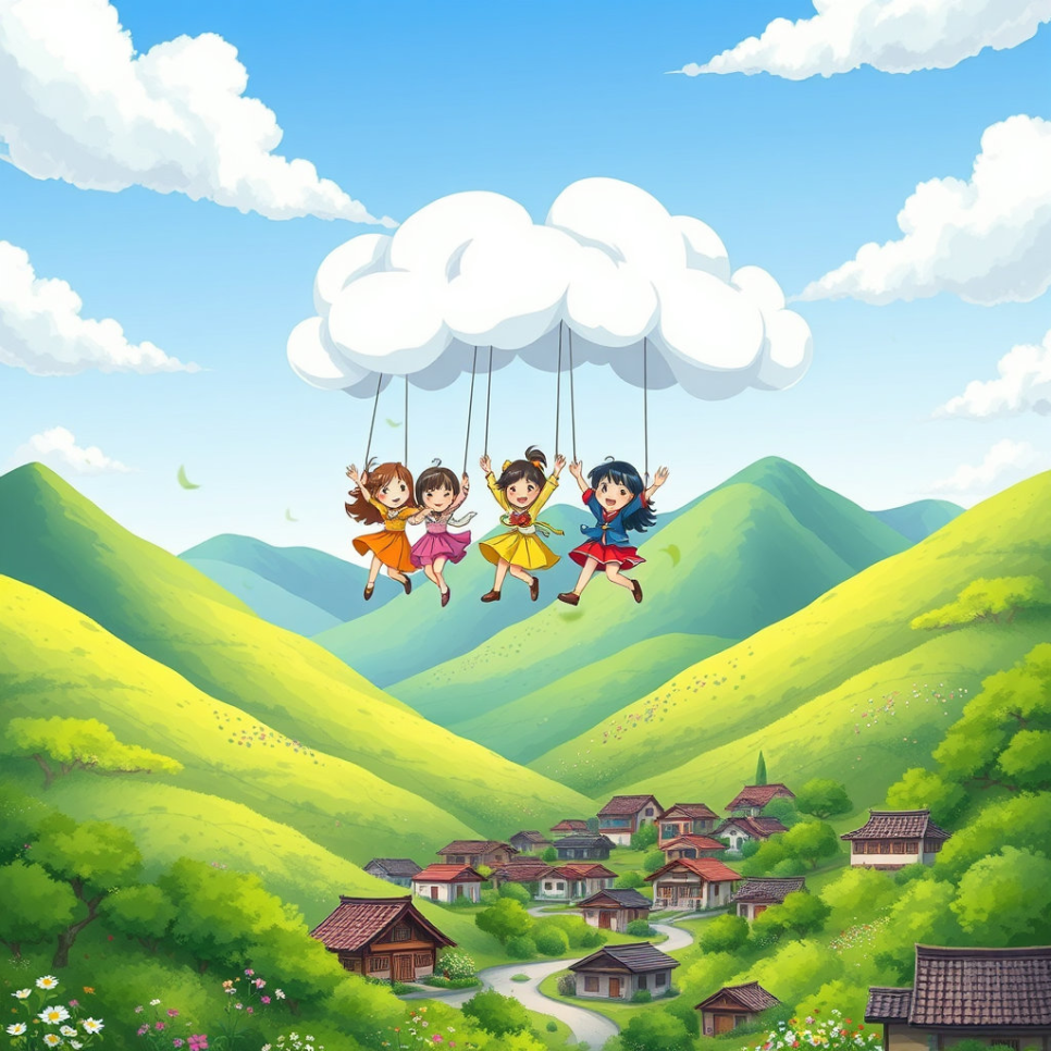 구름 위 신비한 하늘마을에 사는 다섯 친구는 언제나 새로운 세상을 배우고 싶어 했습니다. 그래서 구름다리를 타고 내려올 수 있는 특별한 모험을 떠났지요. 그들이 도착한 곳은 산과 강이 어우러지고, 사계절이 아름답게 흐르는 나라, 한국이었습니다.
