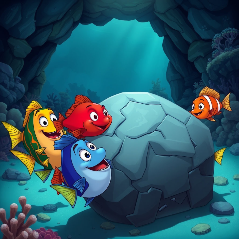 붉은 물고기의 용기와 힘은 연못 친구들에게 꿈을 꾸고 도전할 용기를 주었어요. 힘이 약한 물고기들은 함께 힘을 모아 무거운 돌을 옮겨 새로운 보금자리를 만들었고, 겁이 많던 물고기는 용기를 내어 새로운 물풀이 자라는 곳까지 탐험했죠. 모두가 힘을 합치자 연못은 예전보다 훨씬 더 아름답고 풍요로워졌습니다.