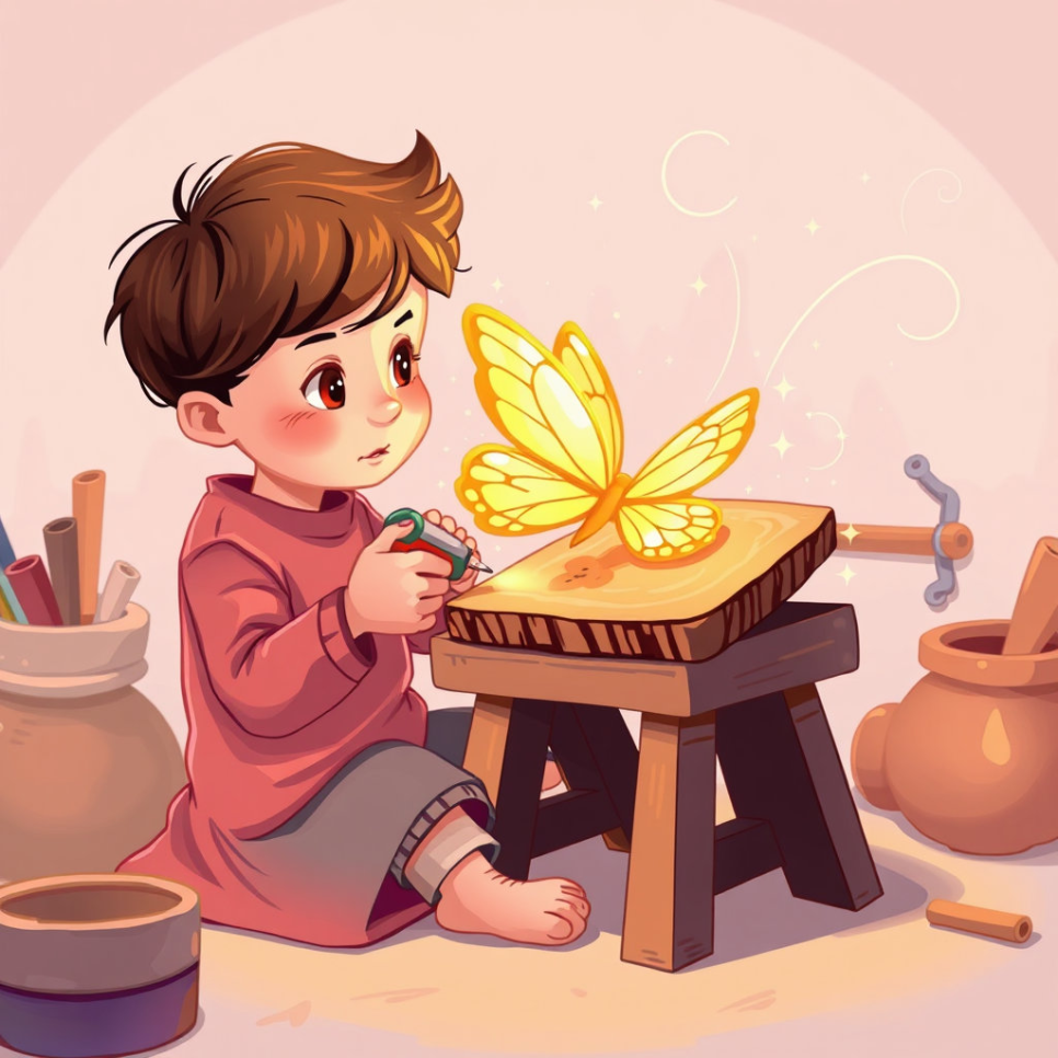 어느 날, 할아버지는 아이들에게 인두를 건네주며 말했어요. “불은 조심스럽게 다뤄야 해. 하지만 잘 쓰면 세상에서 가장 아름다운 그림을 그릴 수 있지.” 아이들은 손을 덜덜 떨며 박에 작은 나비를 새겨 보았어요. 인두 끝이 닿을 때마다 ‘지익’ 소리가 나며 나비가 점점 모양을 갖추었지요. 그 순간, 박 속에서 작은 나비 빛이 반짝이며 날아오르는 것 같았어요.