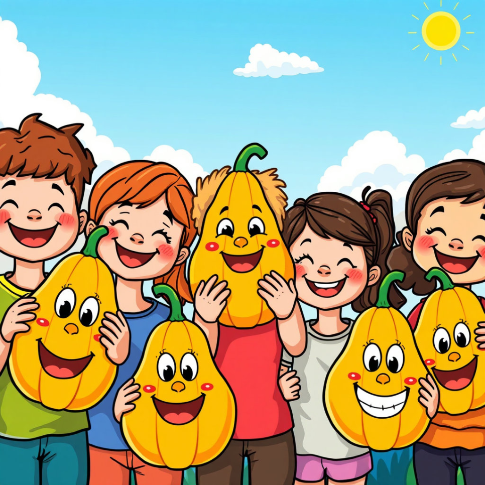아이들은 자신만의 박을 가지게 되었어요. 어떤 아이는 웃는 얼굴을 새겼고, 또 어떤 아이는 자신의 강아지를 새겼지요. 박을 껴안은 아이들은 마치 친구를 안은 듯 행복했답니다. 놀라운 건, 그 박을 볼 때마다 그림 속 얼굴이 미소를 지으며 아이들에게 웃어 주었다는 거예요. 그래서 마을에는 언제나 웃음소리가 가득했지요. 웃음이 담긴 박은 사람들의 슬픔을 잊게 하는 신기한 힘이 있었어요.