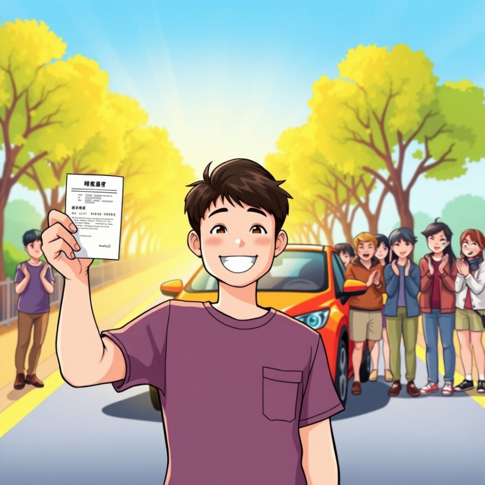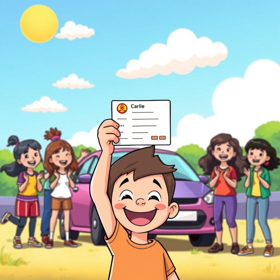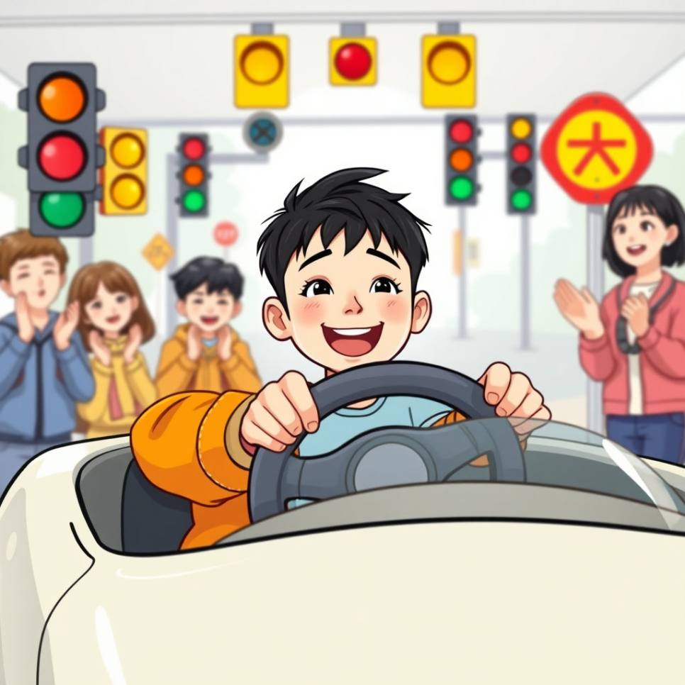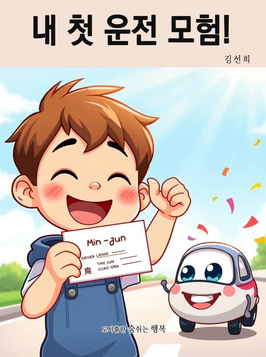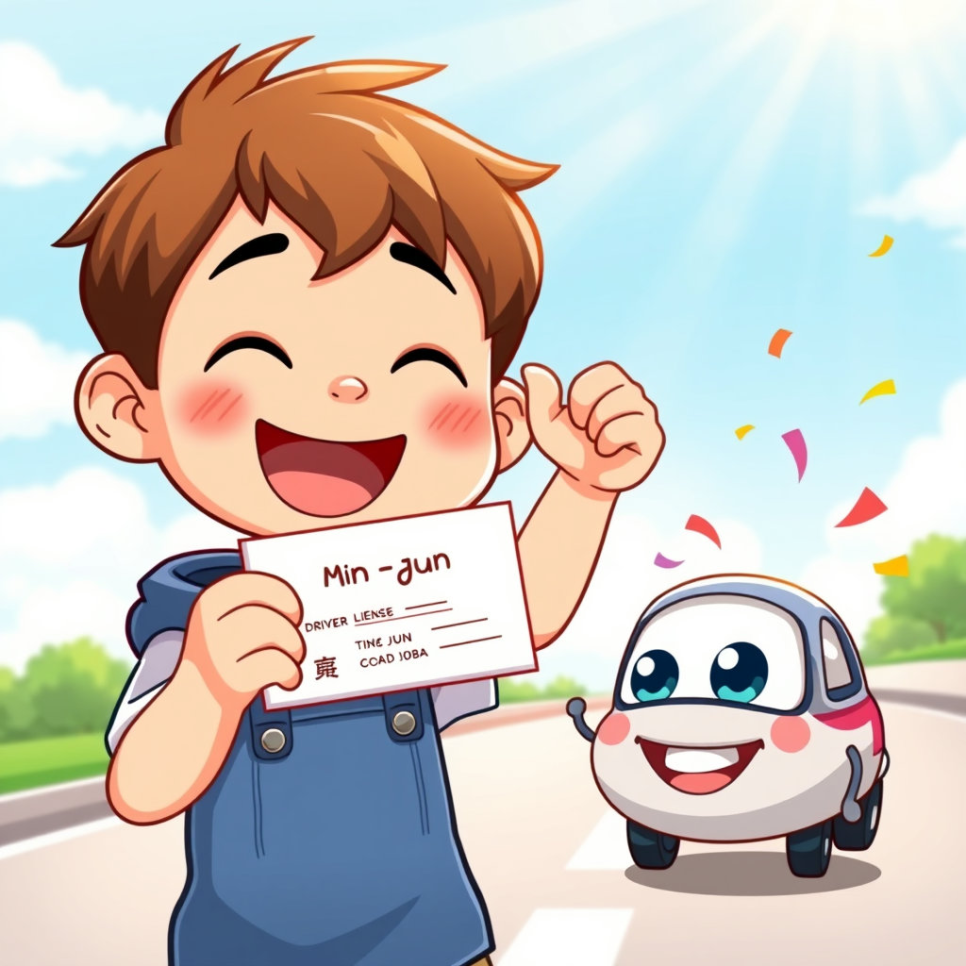 “드디어 운전면허 취득!” 민준이는 자랑스럽게 면허증을 들었어요. 자동차 친구와 함께한 모든 모험이 떠올랐어요. 이제 민준이는 도로 위에서 스스로 모험을 이어갈 준비가 되었답니다.