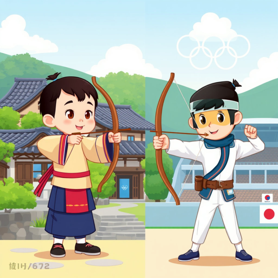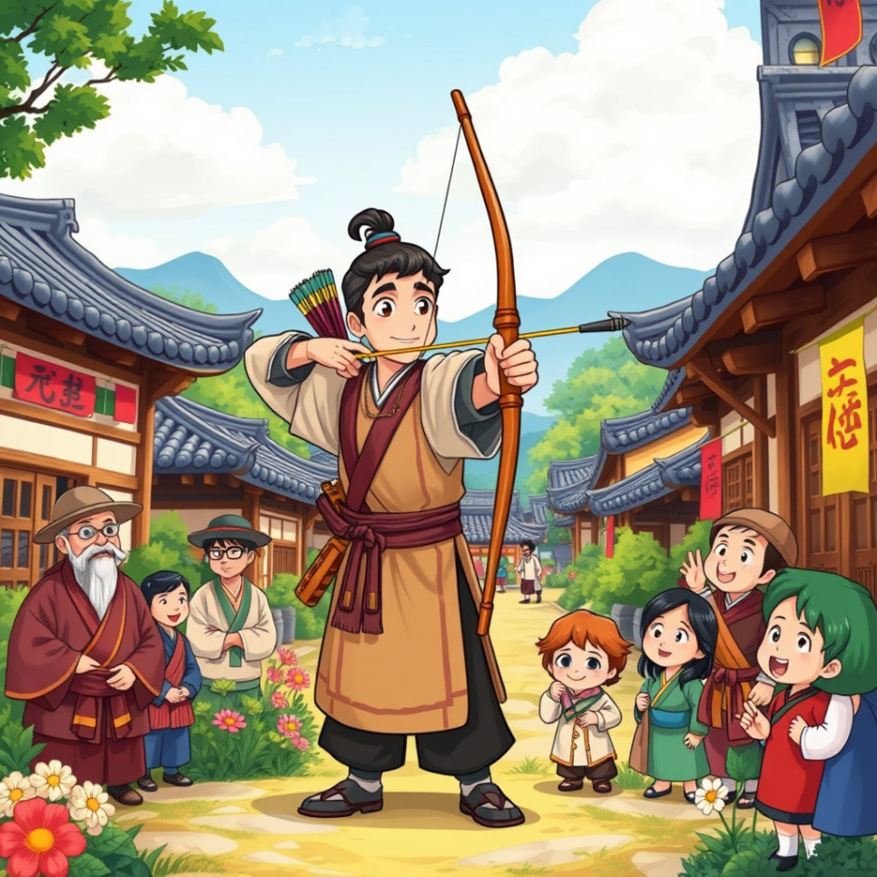 옛날 한국에는 하늘을 날아가는 화살처럼 빠르고 정확하게 목표를 맞히는 사람들이 있었어요. 그들은 전쟁에서 나라를 지키고 사냥을 하면서 활쏘기를 배웠죠. 화살이 휙 날아가 목표를 맞힐 때마다 마을 사람들은 박수를 치며 감탄했어요. 활과 화살은 단순한 무기가 아니라, 사람의 마음과 집중력을 키워주는 소중한 도구였답니다.