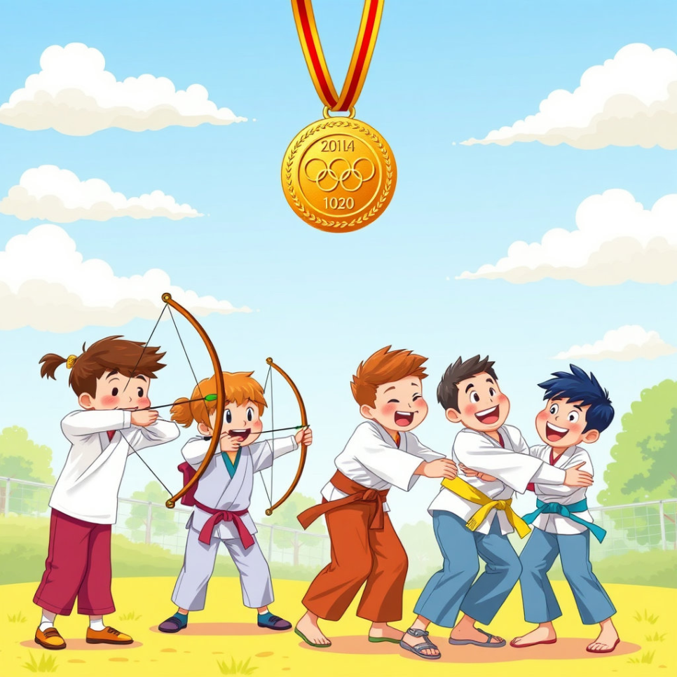 이제 책을 다 읽은 우리 친구들도 활과 유도를 배우며 꿈을 키울 수 있어요. 화살이 과녁을 향해 날아가듯, 노력과 집중을 하면 어떤 어려움도 극복할 수 있답니다. 좌절해도 다시 일어서는 용기를 잊지 말고, 몸과 마음을 단단하게 키워 미래의 올림픽 선수나 무예 장인이 되는 꿈을 향해 나아가세요. 한국의 전통과 현대 스포츠가 함께하는 세상에서, 여러분의 도전은 언제나 빛날 거예요!