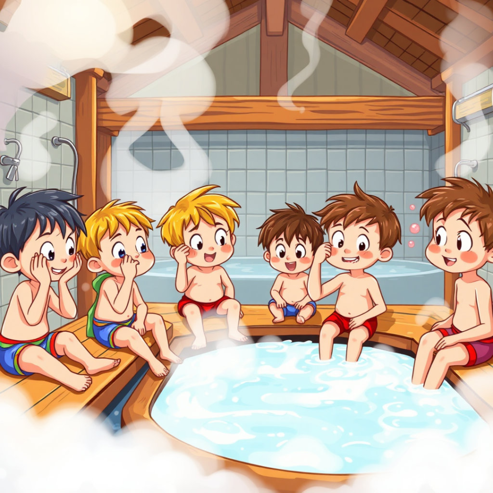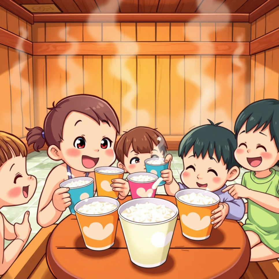 하루 종일 목욕탕에서 땀을 흘리고, 차가운 물에 풍덩 뛰어들고, 달콤한 식혜까지 마신 아이들의 마음은 행복으로 가득 차 있었습니다. 목욕탕은 단순히 몸을 씻는 곳이 아니라, 웃음과 용기, 그리고 따뜻한 가족의 사랑이 담긴 공간임을 알게 되었지요.