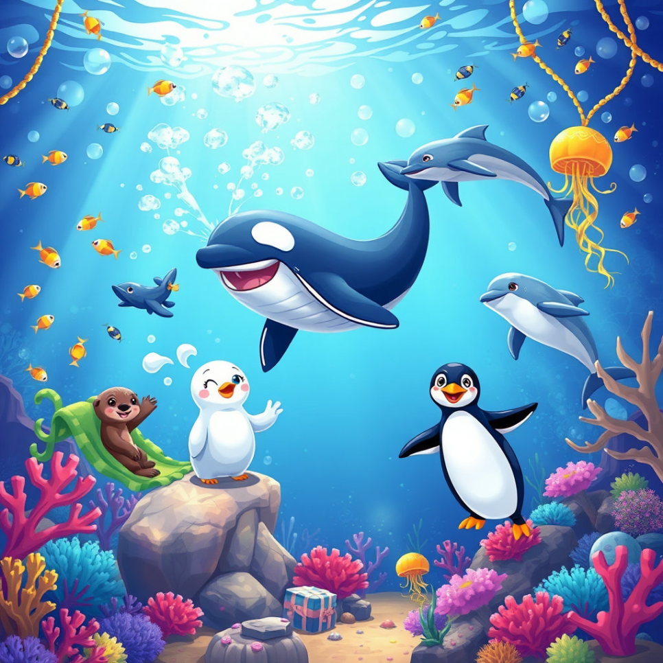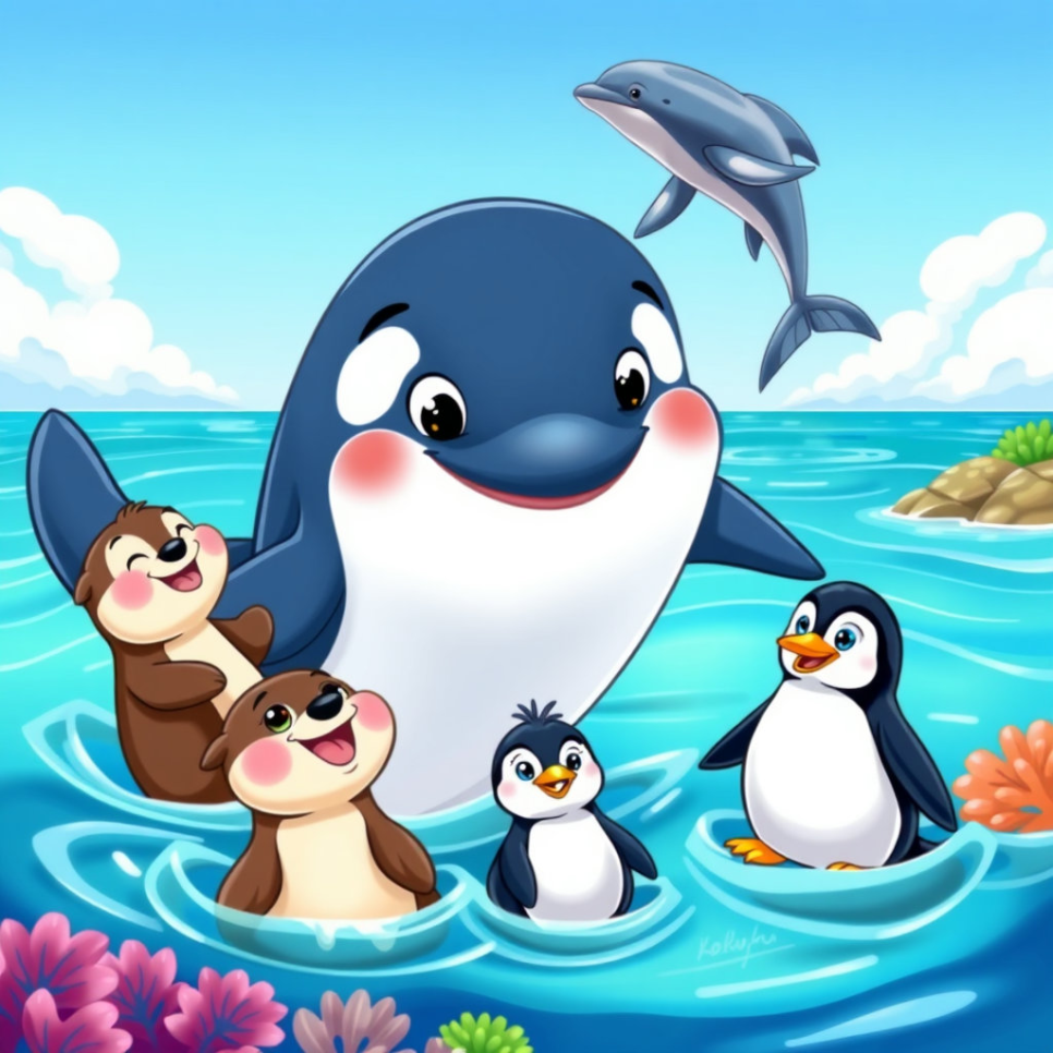 《수달 펭귄 돌고래 샤무의 바다》는 귀여운 수달 오돌이, 호기심 많은 펭귄 뚜뚜, 점프를 좋아하는 돌고래 루루, 그리고 바다의 수호자 범고래 샤무가 펼치는 환상적인 바다 이야기입니다. 작은 친구들은 바다의 쓰레기 문제를 만나 힘을 모아 바다를 지키고, 폭풍우 속에서도 서로를 지켜내며 용기와 협동심을 배웁니다. 깨끗해진 바다에서 펼쳐지는 축제와 무지개 약속은 어린이들에게 희망과 우정의 가치를 전합니다.